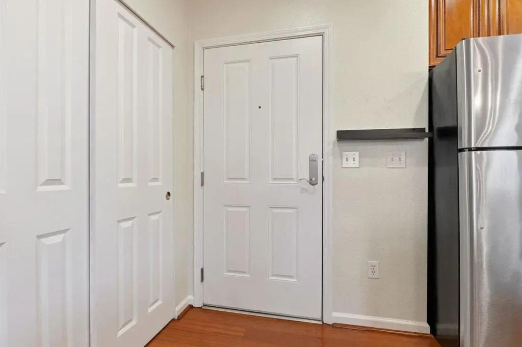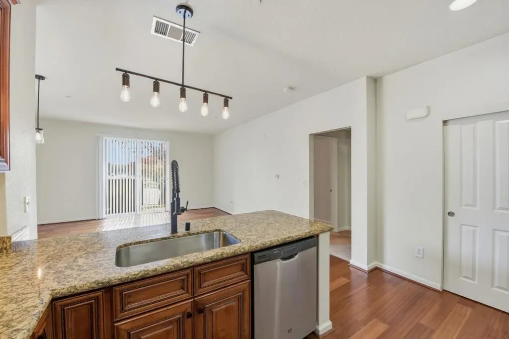 Welcome to this inviting ground-floor, end-unit condo in San Jose, where comfort meets convenience in a thoughtfully designed 767 sq ft layout. This light-filled 1-bedroom home offers a spacious retreat complete with a walk-in closet, while the full bathroom features double sinks and a shower-over-tub for added functionality. The kitchen is ready to impress with granite countertops and a full suite of appliances, seamlessly flowing into the open living and dining areaperfect for entertaining or relaxing at home. Enjoy casual meals at the breakfast bar or host friends with ease in the dining space. A blend of tile, carpet, and hardwood flooring adds both style and warmth throughout. Stay comfortable year-round with central forced air heating, and enjoy the convenience of in-unit laundry. As an end unit, youll appreciate added privacy and natural light. Beyond your front door, the gated community offers resort-style amenities including a pool, spa, gym, and BBQ areaideal for soaking up the California lifestyle. Located just minutes from Los Gatos Creek Trail, this home also provides easy access to outdoor recreation, shopping, and dining, all within the Campbell Union Elementary School District. A perfect blend of comfort, style, and locationthis is one you wont want to miss.