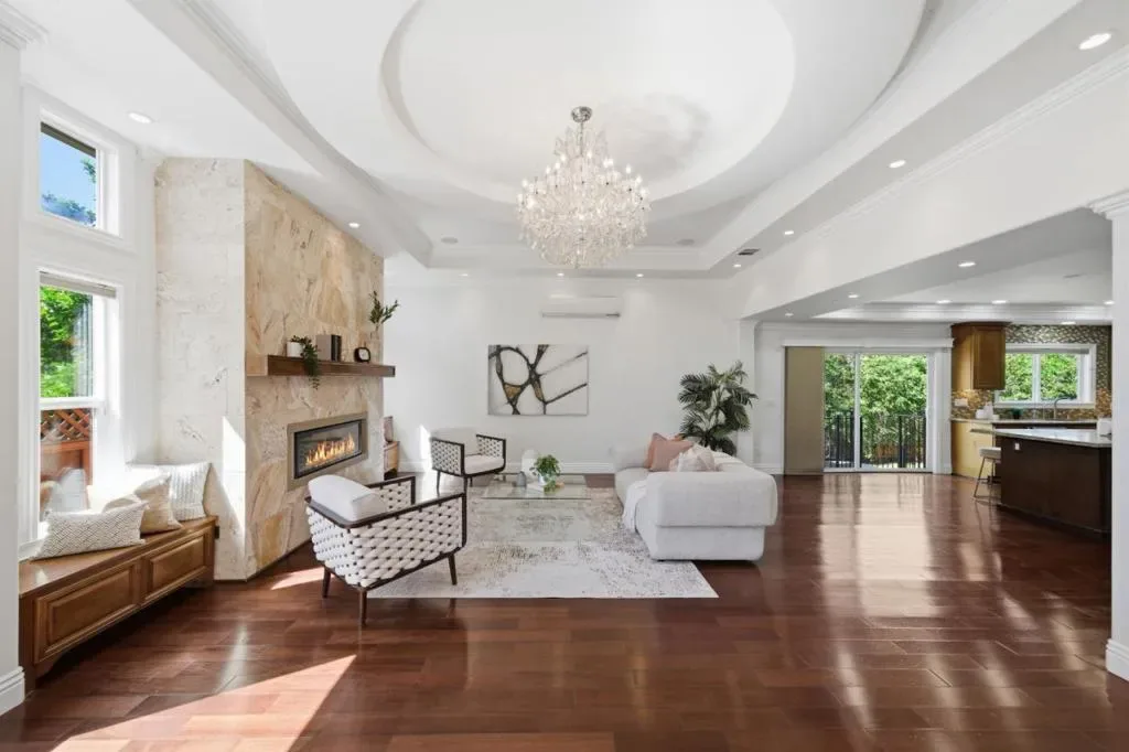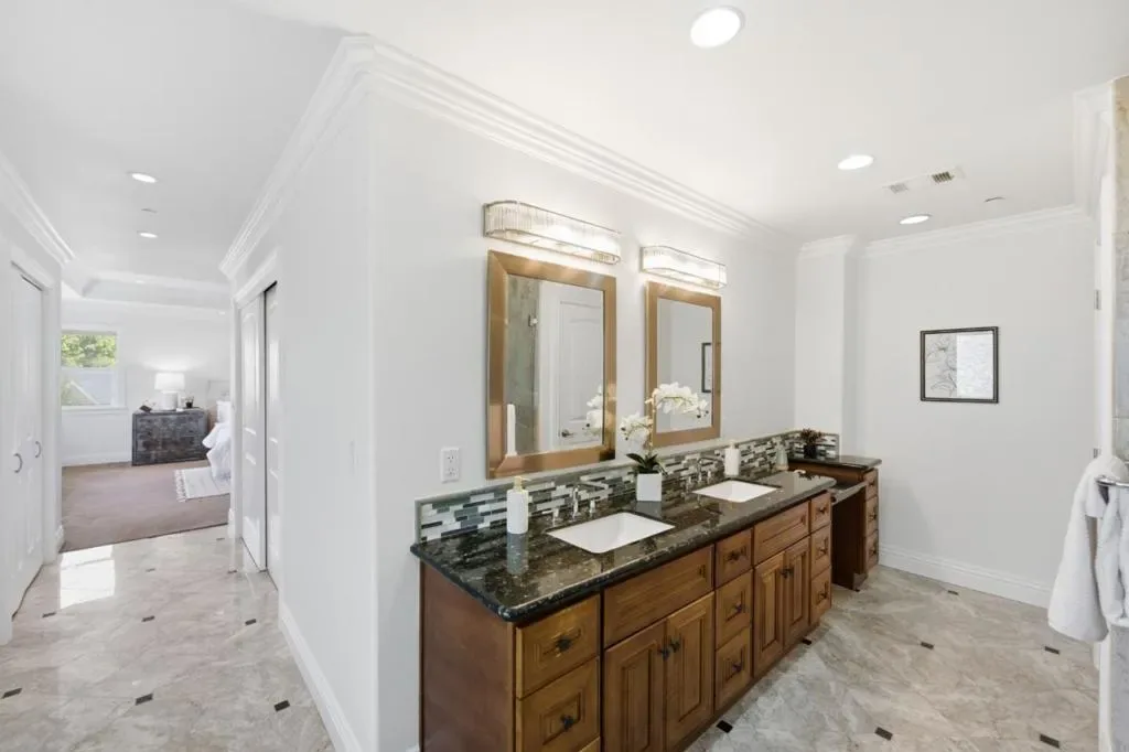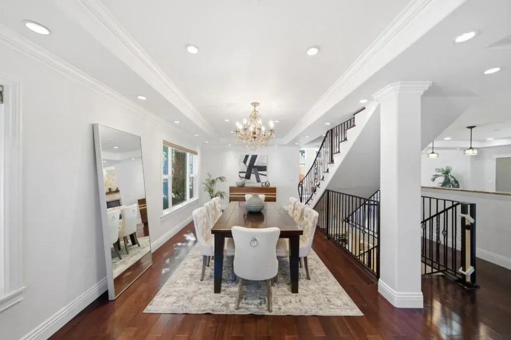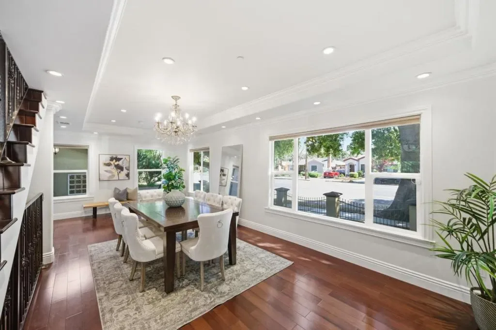 Custom Mediterranean showcase in the heart of the Rose Garden. Completely rebuilt in 2013, this grand residence blends classic Spanish-inspired architecture with modern luxury and scale. Spanning 4,538 SF across 3 levels, the home offers 5 beds and 4.5 baths of open-concept living. The dramatic front living room features a striking oval tray ceiling, elegant crown moldings, rich hardwood floors & statement fireplace. The kitchen includes a large island, custom cabinetry, granite counters, gas cooktop w/hood, double ovens, Thermador dishwasher & Bosch fridge. Formal dining area w/abundant natural light. The spacious upstairs primary suite offers custom closets & a luxe bath w/dual vanity, tub & oversized glass shower. An additional en-suite bedroom on the main level & upstairs. Expansive lower level w/fireplace, wine fridge, 2 beds and full bath – perfect for a game/media room or multi-generational living. Additional features: dual-zone HVAC, solar, security system, laundry room & 3-car garage w/EV charger outlet. Private backyard w/artificial grass, deck & gazebo. Close to the historic Rose Garden, Santana Row & major commute routes. An opportunity to own a property that delivers scale, flexibility & architectural presence in one of San Jose’s most beloved neighborhoods.