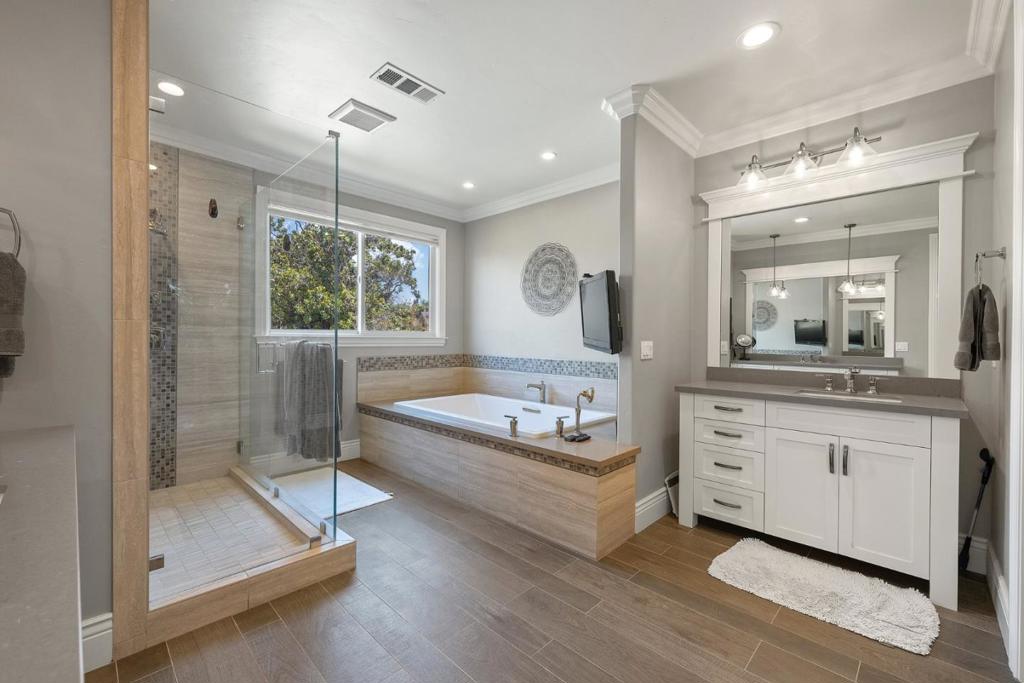 Stunning Willow Glen Estate built in 2017! Awesome Glenwood Neighborhood! This 4763 square foot house on a 16,117 lot has everything! 5 full ensuites, 5 1/2 bathrooms! Separate living room with fireplace, separate formal dining room! Massive Great Room, Breakfast Room and Custom Kitchen! Grand Entry with 25 foot ceilings! Recessed lighting throughout! 7 inch plank Hardwood throughout downstairs! Separate Mud Room at garage entry with additional freezer! Incredible custom 400 bottle wine cellar! Large storage underneath staircase and separate storage room in garage! 513 sq ft garage with 2 large storage areas and EV charger! Custom Kitchen with large island, top of the line thermador appliances, custom pantry and 3 ovens Complete owned Solar with 24 Kilowatts and 3 Guard Battery Back for minimal utility costs! Central Air Conditioning, Double Pane windows throughout! Park like backyard with huge pool with automatic cover, separate above ground hot tub, built in kitchen with barbecue, TV covered by beautiful Gazebo, Horseshoe Pit, two turf grass areas, many spaces to entertain! Travertine surround the pool! Presidential Roof! New fences!. Master suite Upstairs includes two separate walk in closets, huge bathroom with separate vanities, custom shower and separate tub!