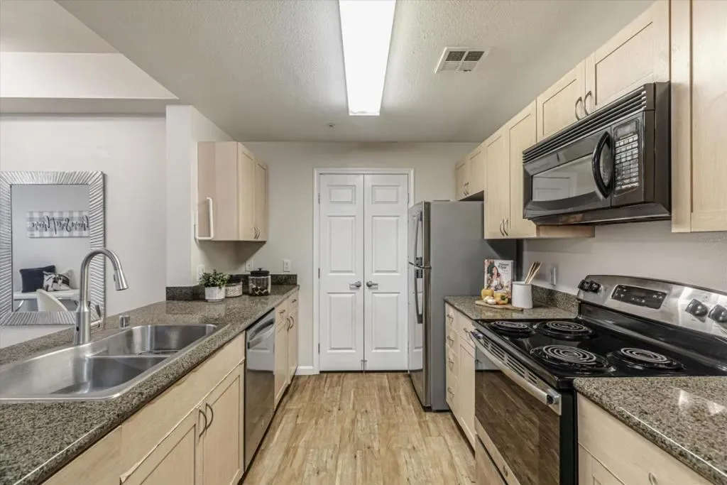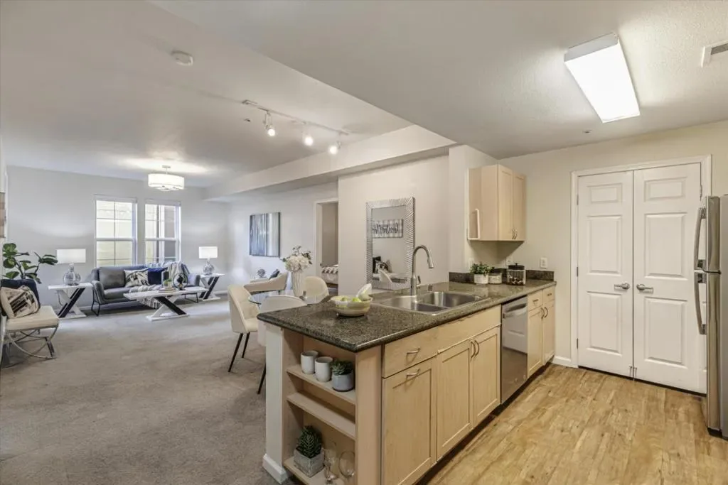 Welcome to this spacious 2-bedroom, 2-bathroom interior condo in a highly sought-after gated community. The kitchen features recently purchased stainless steel appliances, granite countertops, and overlooks the dining area and living room, creating an open layout. The living room opens to a balcony, perfect for fresh air. New carpet adds a fresh touch to the home. The primary bedroom includes a walk-in closet and an en suite bathroom with both a shower stall and separate bathtub. The secondary bedroom features a walk-in closet, a second closet with mirrored doors, and direct access to the hallway bathroom as well as the balcony. Additional highlights include a laundry room, dual pane windows, and two assigned side-by-side parking spaces near the elevator. The clubhouse includes a gym, game room, and business center. Outdoors, enjoy a pool, BBQ area, and well-maintained walkways with water fountains. This friendly, family-oriented community offers ample guest parking and is within walking distance of Rosemary Garden Park and light rail stations, with easy access to downtown San Jose, major tech companies, restaurants, and Highways 87, 880, and 101.