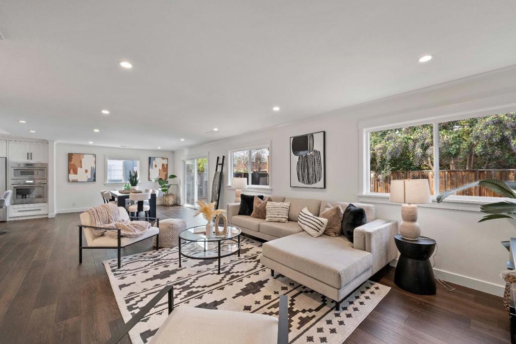Beautifully remodeled and filled with natural light, this inviting home offers four bedrooms and three full bathrooms with a layout designed for comfort and connection. The main level features three bedrooms, including a private en-suite retreat, while two additional bedrooms share a hallway bath perfect for flexible living and guest accommodations. The heart of the home is a modern open floor plan where the kitchen, dining, and living spaces come together effortlessly, creating an ideal setting for both everyday moments and memorable gatherings. A chef-inspired kitchen showcases a large island, oversized sink, double ovens, and abundant counter space perfect for leisurely weekends and inspired cooking. Glass doors extend the living space outdoors to a charming backyard with a generous lawn and patio, offering room to relax, play, or entertain under open skies. The two-car garage includes laundry and a convenient laundry chute from the upstairs bedroom for added ease. Recently remodeled throughout, this home shines with thoughtful upgrades and refined finishes. Located within the sought-after Moreland Neighborhood Association, with nearby schools, parks, shopping, dining, entertainment, and easy access to major tech hubs, this home offers both tranquility and convenience.