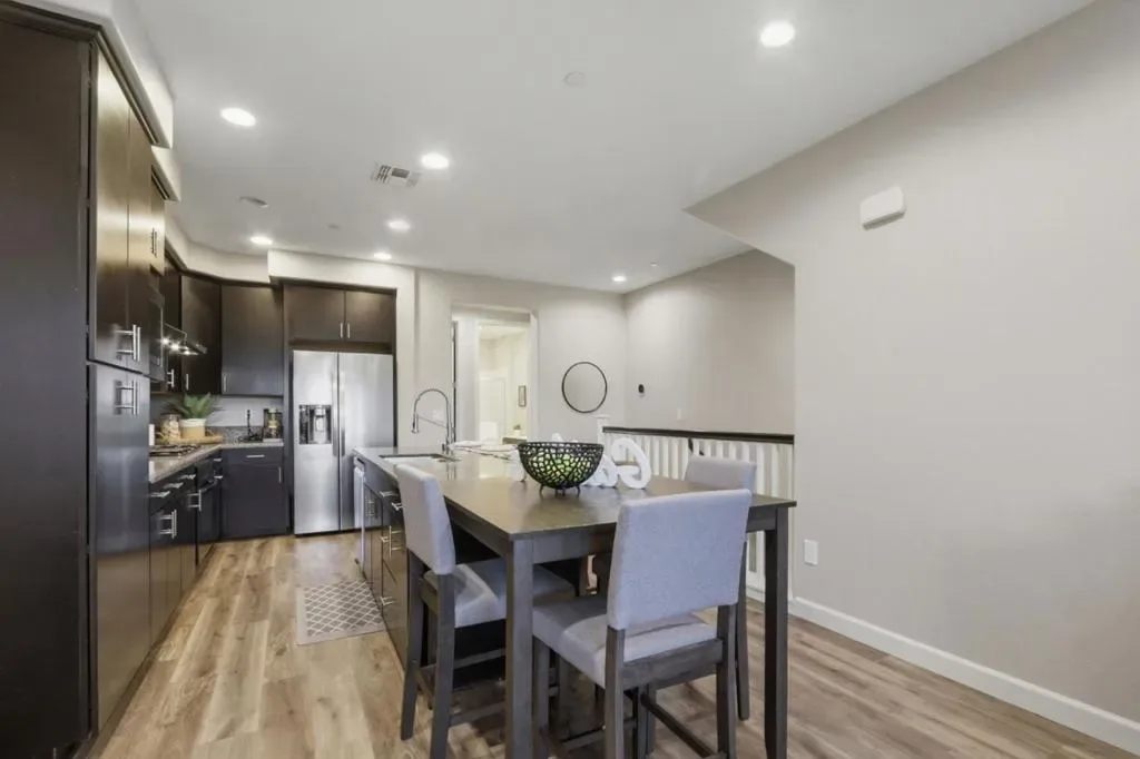 Welcome to 1653 Hillsdale Ave #4 – A Planned Unit Development in the Heart of Cambrian/Willow Glen. This stunning townhome was built in 2013, and has 3 bedrooms and 3 bathrooms, spanning over 1,535 square feet. Two of the bedrooms have en suites, and the main living floor has its own full bathroom and bedroom, making this floorplan extremely functional. Enjoy your private patio with a view of the hills, and a remodeled kitchen with updated appliances and a gas stove. Your oversized 2 car tandem garage is extremely functional, with extra space for a workbench or gym area. Enjoy walkability to nearby shops, parks, and schools. This is single family home ownership, within a low cost HOA! Additional highlights include: Recessed lights, plantation shutters, multiple patios, a gorgeous primary suite with walk in closet and bathroom, and an open floorplan from kitchen to living room.