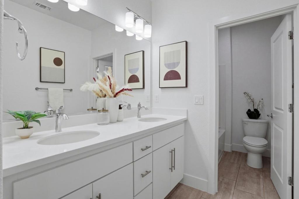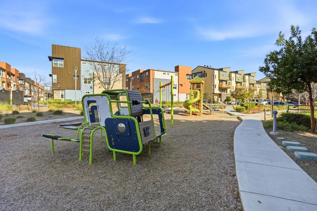 Immaculate and impeccably maintained, this top floor corner unit townhome nestled a highly coveted location with stunning open views. It features abundant large picture windows that offer opulent soothing natural light and lush greenbelt views from most rooms. The open floor plan is decorated in contemporary neutral colors and trendy tile floors throughout. The spacious and functional kitchen is equipped with ample white cabinets, SS appliances, expansive quartz counters, and a large central island with a convenient breakfast bar. Step out onto the intimate deck from both the living room, seamlessly blending indoor and outdoor living. The generous master suite includes a lavish ensuite bath with dual sink vanity, and a spacious walk-in closet. Separated laundry room in good size. Enjoy outdoor activities in the nearby Newbury Park. Community amenities include a BBQ/picnic area and a dog-friendly park. Convenient location: short commute to downtown San Jose, Japantown, and shopping centers like Costco, Ranch 99, and H-Mart, easy access to BART, VTA, freeways 101/680, and within walking distance to Google and Meta shuttle stops.
