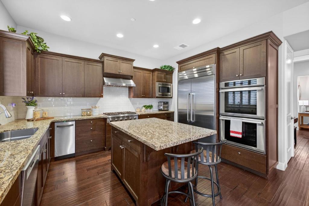 Welcome to 1855 Sycamore Creek in the scenic Almaden foothills of San Jose. Built in 2015, this 4-bedroom + loft/office, 4-bath home offers a spacious, functional layout with modern upgrades throughout. Curb appeal shines with a paver driveway, stone accents, and inviting front porch. Inside, high ceilings, abundant natural light, engineered hardwood flooring, and recessed lighting create a bright and welcoming atmosphere. The kitchen features stainless steel appliances, granite countertops, a walk-in pantry, and open flow to the dining and living areas, ideal for everyday living and entertaining. The living room includes a gas fireplace, custom built-ins, and surround sound. A ground-floor bedroom and full bath provide flexibility. Upstairs offers generously sized bedrooms, a loft bedroom with en-suite bath, and a primary suite with coffered ceilings, walk-in closet, and spa-style bath with dual vanities, soaking tub, and stone-surround shower. The private corner-lot backyard includes mountain views, mature trees, a built-in outdoor kitchen, putting green, fruit trees, and paver patio. Fully owned solar and smart home features add efficiency and convenience. Close to trails, Almaden Country Club, and parks. Completely Move In Ready with Award Winning Los Gatos School District