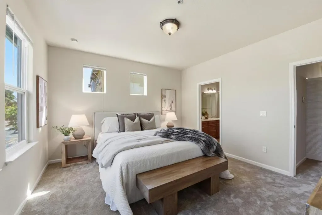 Welcome to this beautifully maintained corner-lot (End-Unit) townhome in the heart of San Jose, offering 1,616 sq. ft. of thoughtfully designed living space. With three spacious bedrooms and two full bathrooms and half bathroom for your guests, this home provides the perfect blend of comfort and functionality. Step inside to soaring ceilings that create an airy, open feel, complemented by brand-new interior paint and plush new carpeting throughout. The well-appointed kitchen features stainless steel appliances, granite countertops with center island ideal for modern cooking needs while seamlessly flowing into the inviting family room, making it perfect for both everyday living and entertaining. Convenience is key with an in-home laundry area complete with washer and dryer. Enjoy year-round comfort with central air conditioning and forced-air heating. Additional highlights include a two-car garage along with a bonus storage room, offering plenty of space for organization and parking. Ideally situated on a desirable corner lot in a vibrant San Jose community, this move-in-ready home is an exceptional opportunity you wont want to miss.