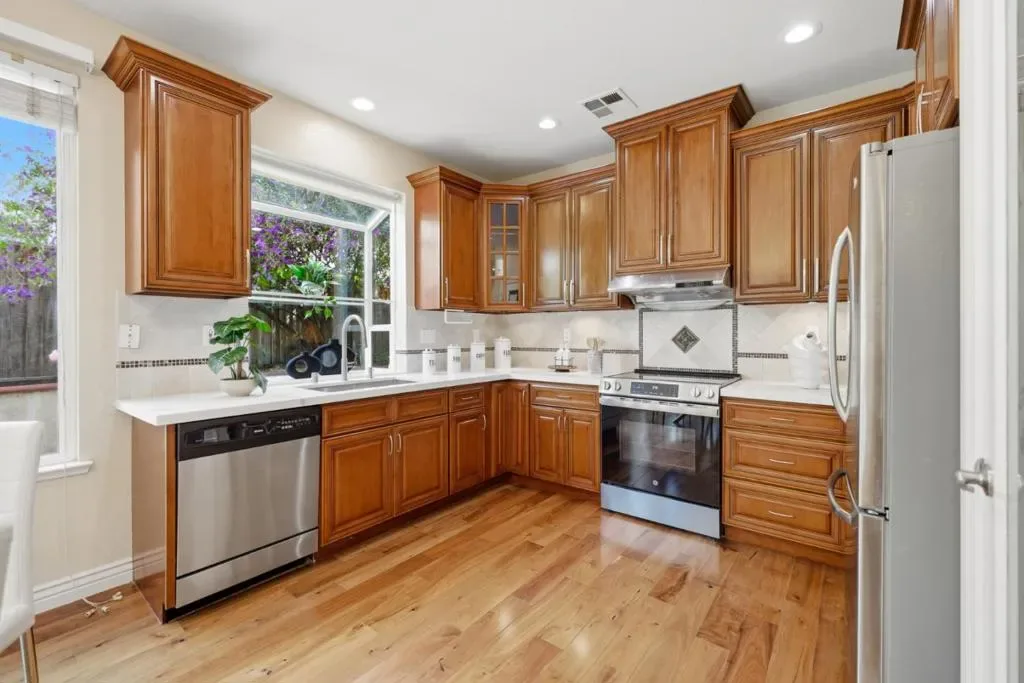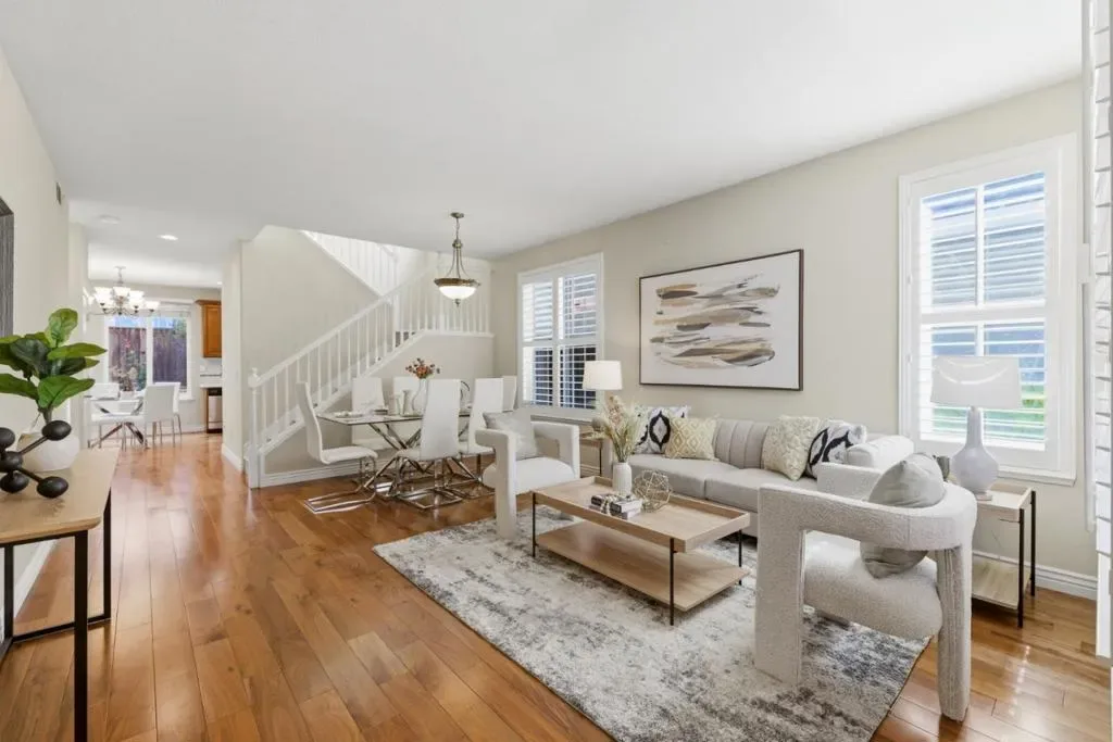 Welcome to this charming 4-bedroom, 2.5-bathroom home located in the vibrant city of San Jose. Spanning 2,082 square feet, this residence offers a blend of comfort and functionality. Renovated kitchen with quartz countertop, stylish cabinets, a dishwasher, exhaust fan, garbage disposal, electric oven range, and refrigerator. Enjoy the warmth of hardwood on the first floor and new flooring throughout the 2nd floor and the stairs. Renovated bathrooms with granite countertops and marble floor. The family room provides a cozy atmosphere with its gas log fireplace, ideal for relaxation. The dining area is conveniently situated within the living room, promoting a seamless flow for entertaining. The spacious master bedroom offers vaulted ceiling, ample space, including a walk-in closet for added storage. The home is equipped with central AC and central forced air-gas heating to ensure comfort throughout the year. Upstairs laundry area is equipped with a washer and dryer for your convenience. Close to park, BART station, HW 680, Ranch 99 and Costco shopping center. This home combines amenities and location, promising a comfortable lifestyle.