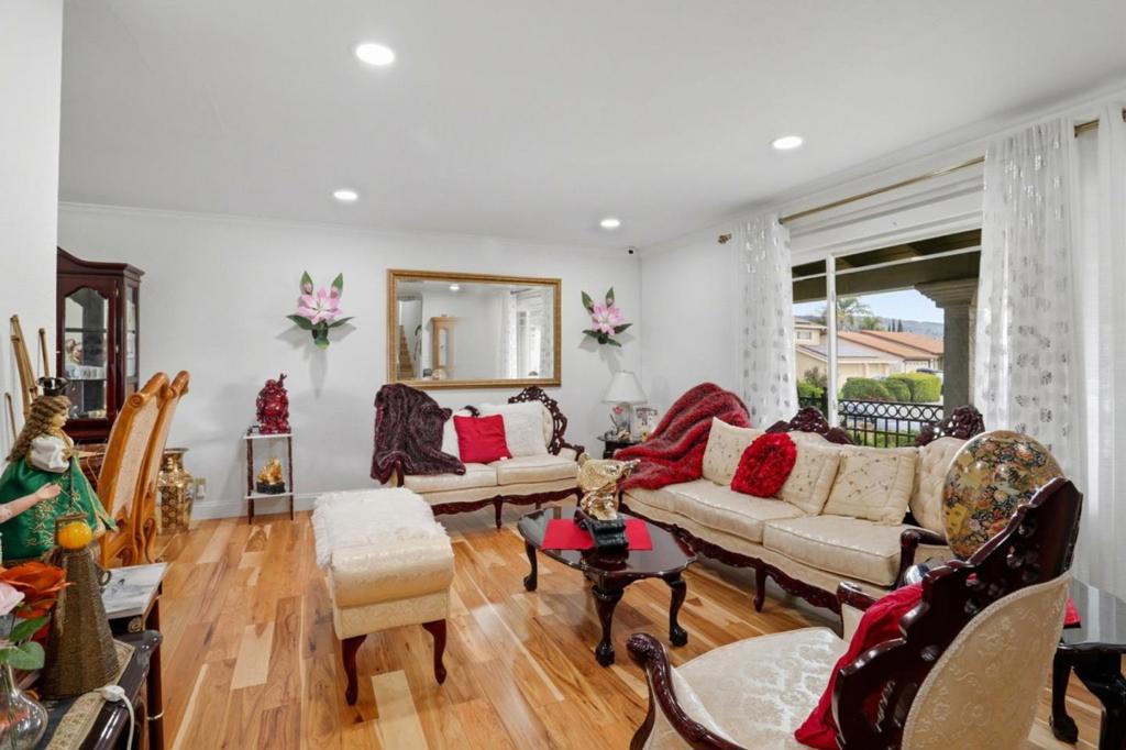 Discover this spacious 4-bedroom, 2.5 bathroom home in the vibrant city of San Jose. With a generous 2,124 square feet of living space, this property offers ample room for family living and entertaining. The heart of the home is the well-appointed kitchen, ideal for culinary enthusiasts. Enjoy meals in the formal dining room or unwind in the separate family room. The home features a mix of hardwood, laminate, and tile flooring, offering both style and durability. Newer dual pane windows & remodeled bathrooms. Stay cozy during cooler months with central forced air heating and a charming fireplace that adds warmth and ambiance to the living space. The convenience of an in-utility-room laundry setup enhances everyday living. The property includes a two-car garage and an existing shed for additional storage needs. Gorgeous backyard with plenty of matured fruit trees. Situated within the Berryessa Union Elementary School District, this home provides a functional layout and essential amenities, making it a practical choice for families seeking a comfortable lifestyle in San Jose. Easy access to freeways & shopping.