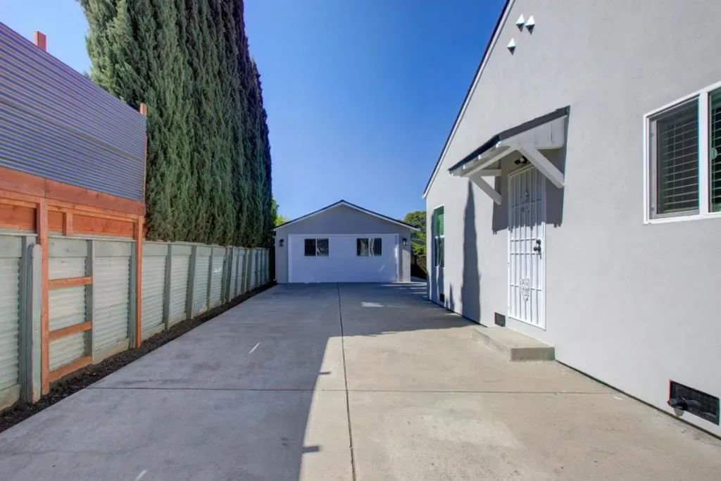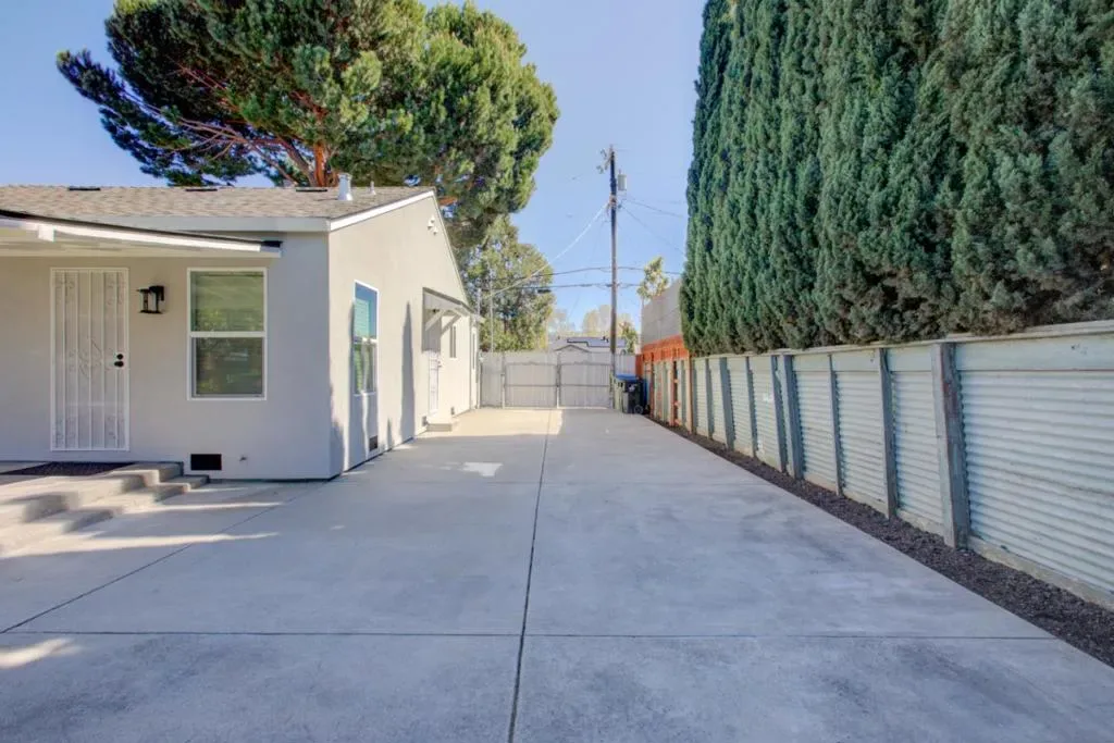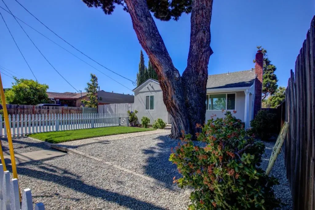 Located in San Jose, this charming 3-bedroom, 2.5-bath home offers 962 square feet of comfortable and inviting living space. The interior features beautiful hardwood flooring throughout, creating a warm and cohesive atmosphere. The living room showcases a cozy fireplace, perfect for relaxing or entertaining guests, while a formal dining area provides an ideal setting for meals and gatherings. The home is equipped with central forced air heating and air conditioning, ensuring year-round comfort. Conveniently situated within the Alum Rock Union Elementary School District, close to shopping, dining, and major amenities. It offers comfort and accessibility. The spacious backyard provides plenty of room for outdoor entertaining, gardening, or relaxation. There is no traditional car garage. However, the parallel driveway offers ample parking for multiple vehicles and potential RV access. The original garage structure has been thoughtfully converted into a versatile bonus space, currently modeled as a primary suite and exercise area, with a full bathroom, walk-in closet, laundry/utility space, and its own mini-split system, creating a comfortable private retreat. This conversion adds approximately 400 square feet of additional functional living space beyond the main home.