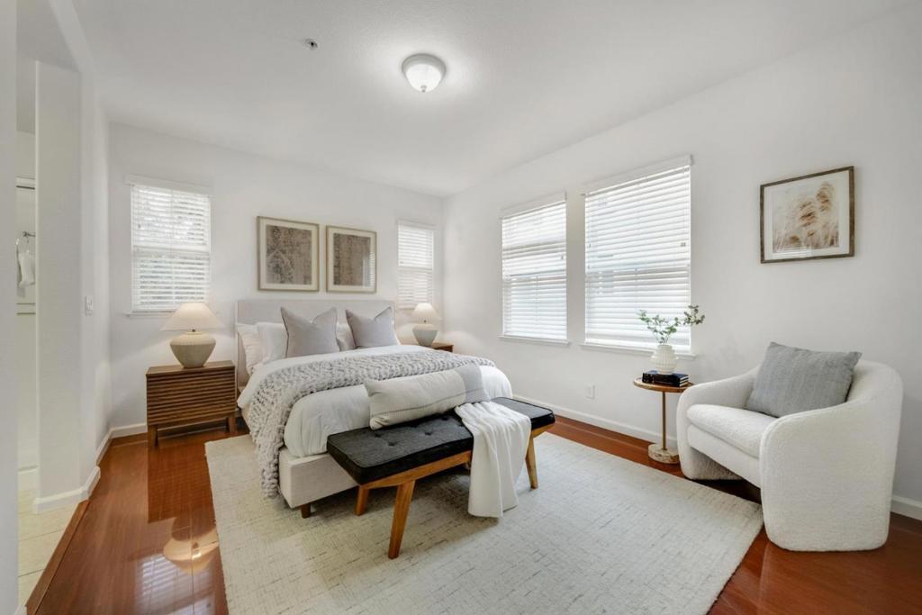 Luxury bright and airy END-UNIT condo, single-story living, loaded with high-end upgrades in a prime location the coveted Spyglass Hill Community! This beautifully updated home features new interior paint throughout, an ideal open layout, and abundant natural light. Enjoy the convenience of in-unit laundry LG washer and dryer, and an attached 2-car garage with extra storage, plus additional hallway storage closet. The gourmet kitchen is designed for both style and function with quartz countertops, stainless steel appliances, gas range, dishwasher, microwave, upgraded cabinetry, under-cabinet lighting, instant hot water dispenser, and a stainless steel sink. The spacious living room showcases newer luxury laminate flooring and modern window blinds. The primary suite offers a huge walk-in closet and laminate floors, while the spa-inspired primary bathroom features a rainfall shower head and body spray system. A generous guest bedroom and upgraded guest bath provide comfort for family or visitors. Outside patio area to enjoy coffee or enjoy the sunsets. Enjoy beautiful mountain views, scenic paths along Communication Hill, and breathtaking sunsets in a peaceful, quiet setting. Conveniently located near Willow Glen, with easy access to shopping, dining, and major commute routes.