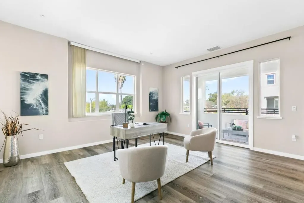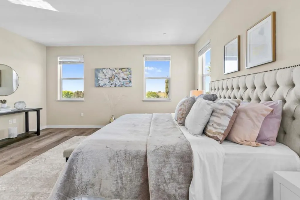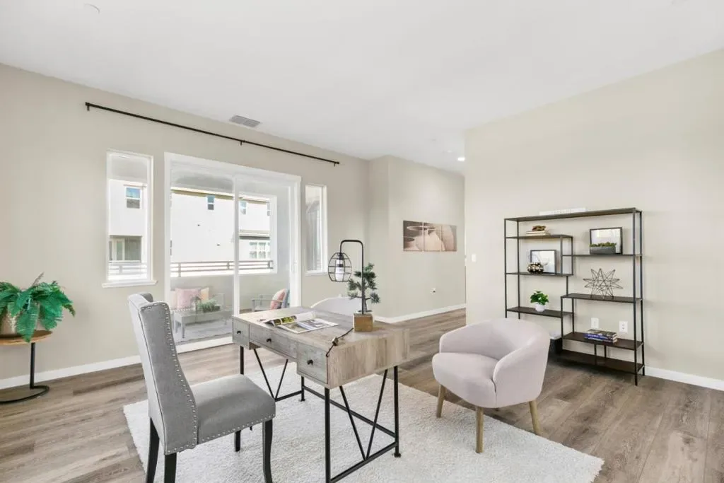 This gorgeous 3,090 sqft single-family home, built in 2019, is located on a desirable corner lot in the prestigious Asana community. It features 3 spacious bedrooms, 2 full baths, and 2 half baths. A versatile room on the first or second floor can be used as a living room, home office, guest room, or for many other purposes. The contemporary open floor plan showcases a chef’s kitchen with high-end Italian appliances, quartz countertops, custom cabinetry, and an oversized island. Soaring ceilings, laminate flooring, and large windows fill the home with abundant natural light and scenic views.The luxurious primary suite serves as a private retreat with a massive walk-in closet and a spa-inspired ensuite featuring a soaking tub and walk-in shower. Enjoy outdoor living with a private balcony, covered patio, and paved side yard. Additional highlights include a fully owned solar system, EV charging capability, and ample storage throughout. The community enhances this luxurious lifestyle with resort-style amenities, including a clubhouse, playground, community garden, BBQ area, and walking paths. Conveniently located near major highways and within walking distance of Costco, Eastridge Mall, Starbucks, sports fields, and much more. Move-in ready! A must-see!