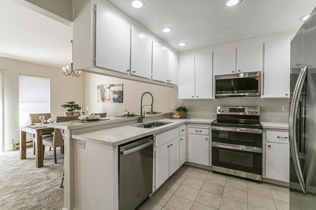 DRAMATIC HIGH VAULTED CEILING IN LIVING/DINING ROOMS FOR LIGHT, OPEN, AIRY AMBIENCE. !!NOT LIVED IN SINCE THE UPGRADES!! 2024 PAINT, RECESSED LIGHTING IN THE KITCHEN, !! 2024 UPGRADED CARPETING, 2024 QUARTZ COUNTERTOPS IN THE KITCHEN & BREAKFAST BAR COUNTER, 2024 QUARTZ PRIMARY BATH COUNTER WITH 2024 DOUBLE SINKS AND PLUMBING, 2024 QUARTZ COUNTERTOP IN THE HALL BATH WITH 2024 SINK AND PLUMBING, 2024 GE OVEN & RANGE, 2024 GE DISHWASHER AND 2024 GE MICROWAVE/FAN OVER THE OVEN/RANGE, 2024 UPGRADED BLINDS ON ALL OF THE WINDOWS AND THE SLIDER, INSIDE CLOSET FOR FULL SIZED CLOTHES WASHER AND DRYER, COMMUNITY POOL/SPA AND CLUBHOUSE. CONVENIENT LOCATION TO SHOPPING, RESTAURANTS, MINUTES TO DOWNTOWN WILLOW GLEN AND GUADALUPE HIWAY 87. PRICED AT SALE PRICE WITH UPGRADES. THIS CONDO HAS NOT BEEN OCCUPIED SINCE ALL OF THE ABOVE REFRESHING, PAINT, APPLIANCES, COUNTERS, ETC., BEAUTIFUL!