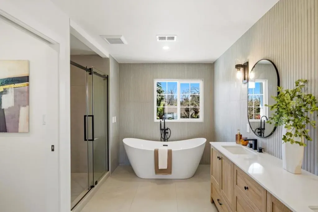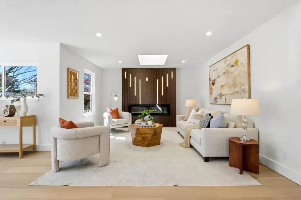 Thoughtfully reimagined, this stunning residence offers a perfect blend of sophisticated design and comfortable everyday living. Sunlight fills the homes open and inviting interior, highlighting new engineered hardwood flooring, fresh interior and exterior paint, custom trim and baseboards, new doors, and elegant designer lighting throughout. At the heart of the home, the beautifully redesigned kitchen features stylish new cabinetry, stainless steel appliances, updated fixtures, skylight, and a generous island ideal for gathering. The flexible layout provides space to relax and entertain – find solace in the additionally family room upstairs. The spacious primary suite offers a private escape complete with a walk-in closet, soaking tub, and separate shower. Additional upgrades include new sliding doors, and a sleek electric fireplace set against a custom wood accent wall. The finished two-car garage features an epoxy-coated floor for a polished touch. Set along a peaceful tree-lined street, this home offers exceptional convenience just minutes from the Municipal Rose Garden, Santana Row, Valley Fair, and major commuter routes to Silicon Valley.