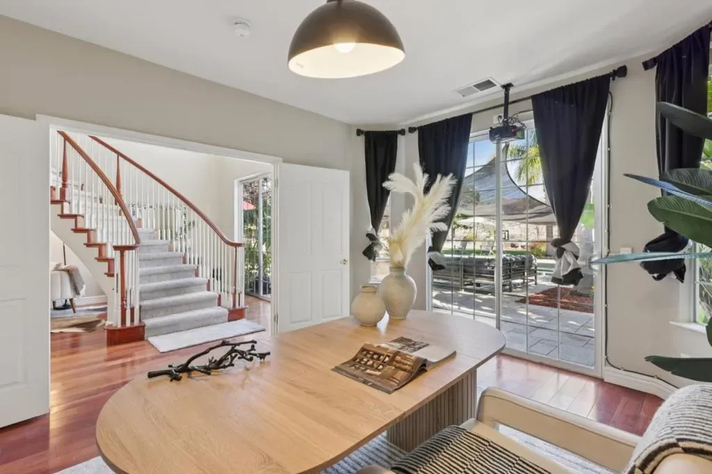 Located in the prestigious Hillstone community, this expansive home sits on an approx. 20,037 sq. ft lot & offers sweeping, unobstructed mountain & valley views from nearly every room. The approx. 4,447 sq ft floor plan features 5 bedrooms plus an office/theater room (optional 6th bedroom) & 4.5 baths. Freshly painted double doors open to an open-concept layout w/ 20-ft ceilings & hardwood floors. The main level includes an office area, open dining & living space, bonus room w/ projector, & a main-level en suite bedroom ideal for multigenerational living. The chefs kitchen features a walk-in pantry, refinished cabinetry & overlooks the family room. Upstairs, four spacious bedrooms include two more en suites & newly installed carpeting. The primary suite offers a sitting area w/ views, large walk-in closet, & huge spa-style bath w/ room to exercise. The resort-style backyard features unobstructed views, landscaped pathways, outdoor kitchen & bar, gazebos, seating area w/ fireplace, pool & spa, trampoline area, & private trail. Additional highlights: RV/boat parking & 4-car garage. Close to top schools, parks & commuter routes. Seller is Property optionee who will be redeeming the Property pursuant to court order using proceeds of sale and transferring it to new buyer.