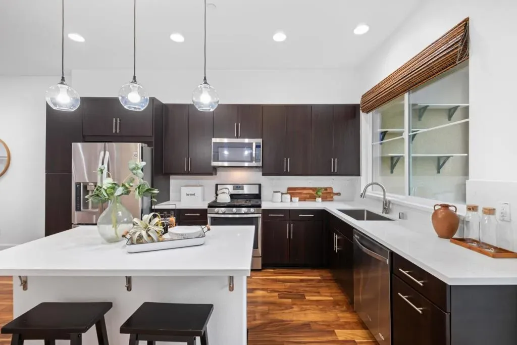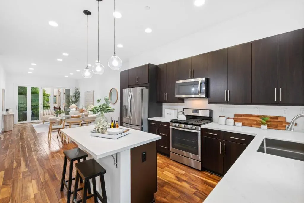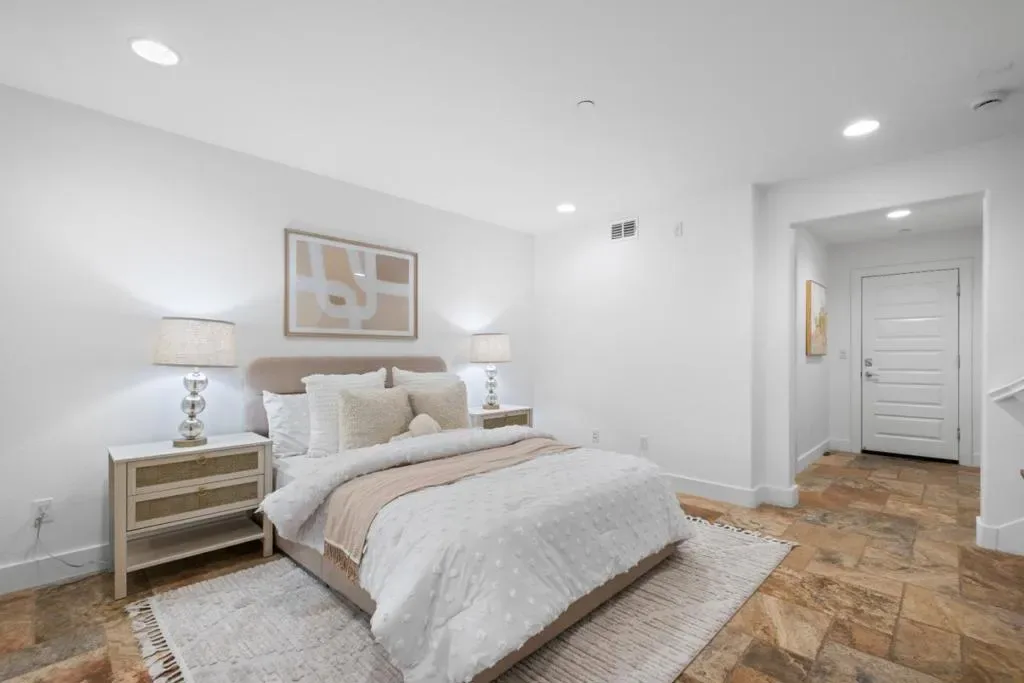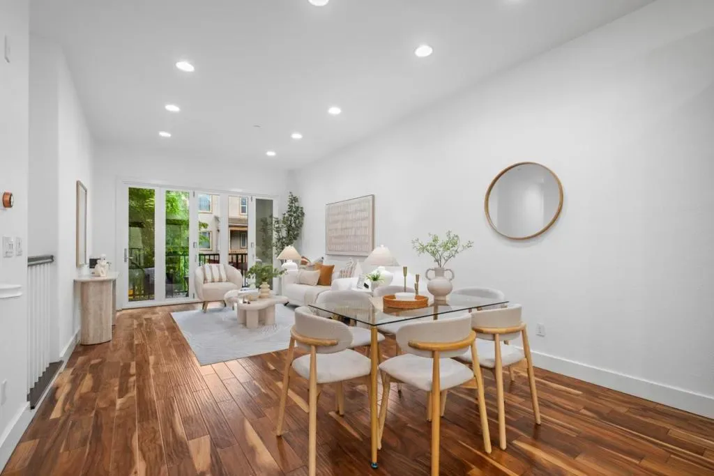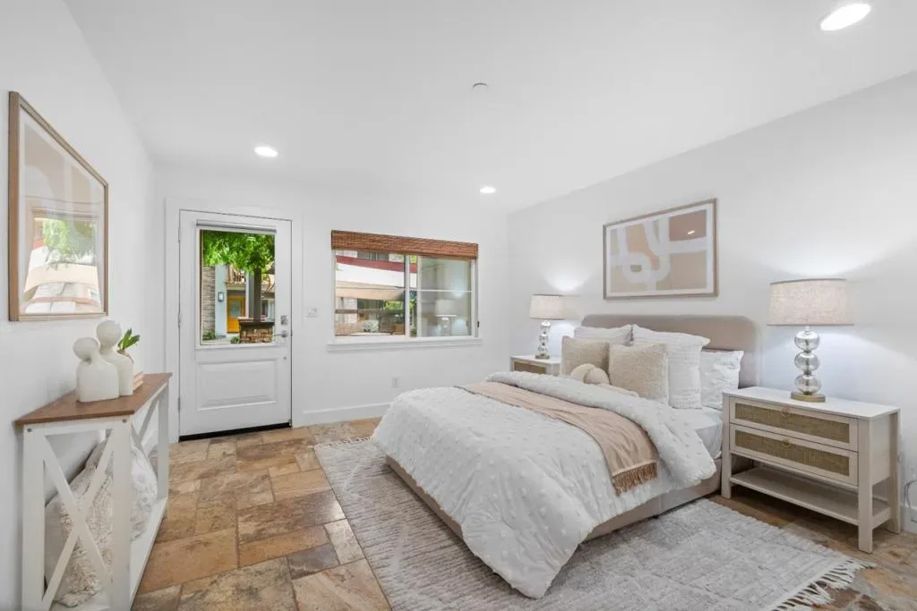 *Desirable layout with main living area, kitchen, and all bedrooms on one level, plus a private ground-floor bedroom with full bath. Former model unit with refined finishes and balanced design. *Bright natural light throughout. Open-concept living area connects to an updated kitchen featuring a large island, ample cabinetry, stainless steel appliances, and new quartz countertops, sink, faucet, and backsplash. *Indoor-outdoor living with two private balconies on the main level, including a garden-view patio with a bi-fold door opening the full wall. Additional private patio on the first floor. *Primary suite includes a walk-in closet. Attached 2-car side-by-side garage with epoxy flooring, Tesla EV charger, water softener, & filtration system. Unobstructed views with good spacing from neighboring units. *Community offers HOA amenities including BBQ areas, playgrounds, & outdoor gathering spaces. *Convenient location near VTA Hostetter Station and BART, with easy access to Costco, 99 Ranch Market, and H Mart. Walking distance to Villa Sport Athletic Club. Zoned for Ruskin Elem, Sierramont Middle, and Independence High (per GreatSchools). Close to major employers like NVIDIA, Google, Apple, & Supermicro. *Disclaimer: County records show 2 bedrooms; first-floor room has no closet.