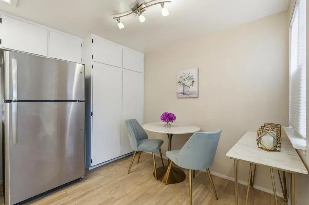 Beautiful upstairs condo in the Cherry Glen neighborhood. Silicon Valley Condo Near Major Tech Hubs. This 645-square-foot upstairs condominium in the Cherry Glen community of San Jose offers an efficient layout featuring one bedroom and one bathroom. The interior quality is highlighted by vaulted ceilings, a gas starting fireplace, and dual-pane windows and sliders. Functional kitchen amenities include laminate flooring, a range, a dishwasher; while the bedroom provides a spacious walk-in closet for storage. The property includes a dedicated one-car carport and 2 guest parking pass. Located within the Berryessa Union Elementary School District and East Side Union High School District, this residence offers significant lifestyle benefits due to its proximity to the VTA Light Rail, BART access, and major freeways. Its strategic position in North San Jose ensures convenient access to the Apple campus, the Great Mall, and diverse dining options, serving as a well-situated home base near major Silicon Valley employment and retail centers.