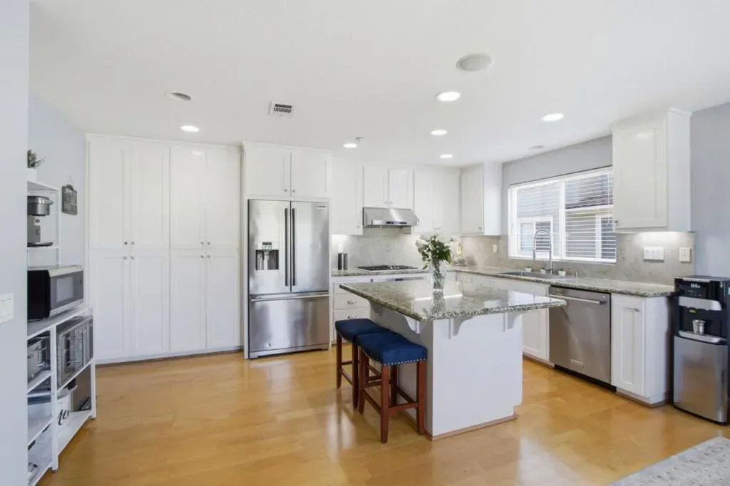 Welcome to this beautifully maintained townhouse in the highly desirable Bella Villagio community! This light-filled home offers stunning views, abundant natural light, and a thoughtfully designed open floor plan perfect for modern living. The bright and airy layout features a spacious living room with soaring ceilings, a cozy fireplace, and a formal dining area that gives the home a single-family feel. The kitchen seamlessly opens to the family room, creating an ideal space for entertaining, and is equipped with white cabinetry, granite countertops, and stainless steel appliances. The luxurious primary suite includes a walk-in closet, dual vanities, an oversized soaking tub, and a separate shower. Additional highlights include generously sized bedrooms, an upstairs laundry area, and an attached two-car garage with extra storage space. Enjoy outdoor living on the private front patio perfect for BBQs and relaxing. End unit with enormous price. The HOA covers water and offers fantastic amenities, including a pool, spa, clubhouse, and playground. Conveniently located near major highways (87, 280, 85, and 101) and close to shopping and dining, this home combines comfort, style, and an unbeatable location.