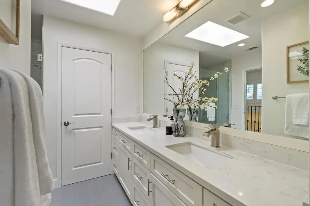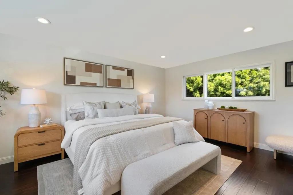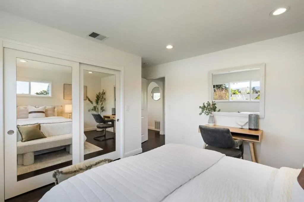 Stunning South Willow Glen custom home, meticulously rebuilt in 2018 with premium materials, designed for indoor-outdoor living. Grand entry with a dramatic staircase opens to an impressive foyer where a statement chandelier sets an elegant tone. Great room with skylight flows into the chefs kitchen with quartz countertops, custom cabinetry, Thermador appliances, and walk-in pantry. An oversized island with wine fridge overlooks the dining area and family room, perfect for everyday living and entertaining. A separate living room adds flexibility and elegance. Designed with versatility, the home features a rare dual primary layout with 2 spa-inspired suites, each appointed with rain showers, dual vanities, Hansgrohe fixtures. The large main-level suite offers a soaking tub and walk-in closet. The upstairs retreat offers his-and-hers closets & serene treetop views. Owned solar, EV ready, fiber internet, dual climate control, separate water heaters, water softener, updated electrical, plumbing, & HVAC, 50-yr roof, epoxy garage. The private backyard is thoughtfully designed with custom fire pit island, outdoor kitchen, water fountain, TV, Bose sound system, fruit trees. Minutes to DT Willow Glen, parks, Schallenberger Elementary, Hacienda Magnet School, & Oakridge Mall with 99 Ranch.