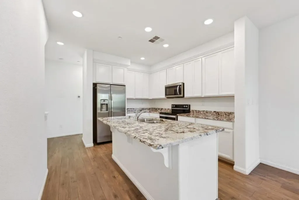 Built in 2019 as part of the communitys earlier release, this home offers a thoughtfully designed three-level layout with modern finishes, excellent separation, and flexible living spaces that adapt to todays lifestyle. Multiple suite-style bedroom options, including dual en-suites, provide a versatile setup for guests, work-from-home needs, or everyday comfort. The main living level is bright and open, centered around a spacious kitchen with a large island, stone countertops, stainless steel appliances, and abundant cabinetry, flowing seamlessly into the dining and living areas. A private balcony extends the living space and creates an inviting indoor-outdoor connection. The primary suite offers a walk-in closet, dual-sink vanity, and generous storage. Additional features include an attached 2-car tandem garage with electric vehicle charging, high ceilings, solar, and a hybrid water heater. Located in The Capitol community with access to greenbelts, BBQ areas, clubhouse, and playground, and close to shopping, dining, parks, BART, VTA, and major commute routes.