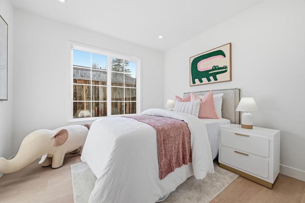 Welcome to this permitted upgraded 5B3B 1808 Sqft single-story home that boasts an array of modern updates, featuring smooth Level 4 drywall, new SPC flooring, new LED recessed lighting, a new central A/C system with Google Nest thermostats, and more. Inside, enjoy a seamless open-concept layout highlighting custom finishes throughout. The meticulously designed dry bar introduces modern aesthetics and enhances the overall living experience. The kitchen is a true showstopper, featuring two-tone European-style cabinetry, premium stainless steel appliances, and quartz countertops with backsplash. The family room features a vaulted ceiling and a stylish wet bar completed with European-style cabinetry, a new quartz countertop, and a thoughtfully selected backsplash. The bathrooms have been fully transformed with new tile flooring and walls, modern vanities with anti-fog dimmable LED mirrors, and new bathtubs and shower kits. The functional layout features five spacious bedrooms, including a primary suite, ideal for multigenerational living or owner-occupancy with rental potential. The low-maintenance front yard offers new grass and irrigation, while the backyard provides ample space for outdoor entertaining. Easy access to Hwy 85 & 101 and VTA. Close to Kaiser, Costco, and more.