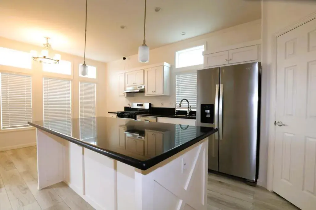 Step into this stunning 2024 home featuring a modern design and thoughtful upgrades throughout! The recessed rear door makes parking easy and convenient, adding both style and functionality. The spacious kitchen is a showstopper with upgraded quartz countertops, a large island that comfortably seats 3-4 people, stainless steel appliances, and a walk-in pantry for plenty of storage. Enjoy ceiling fans in the living room and all three bedrooms for added comfort year-round. The large primary bedroom offers two closets, and the en-suite bathroom features a beautiful walk-in shower. This home combines modern elegance with everyday practicality a must-see!
