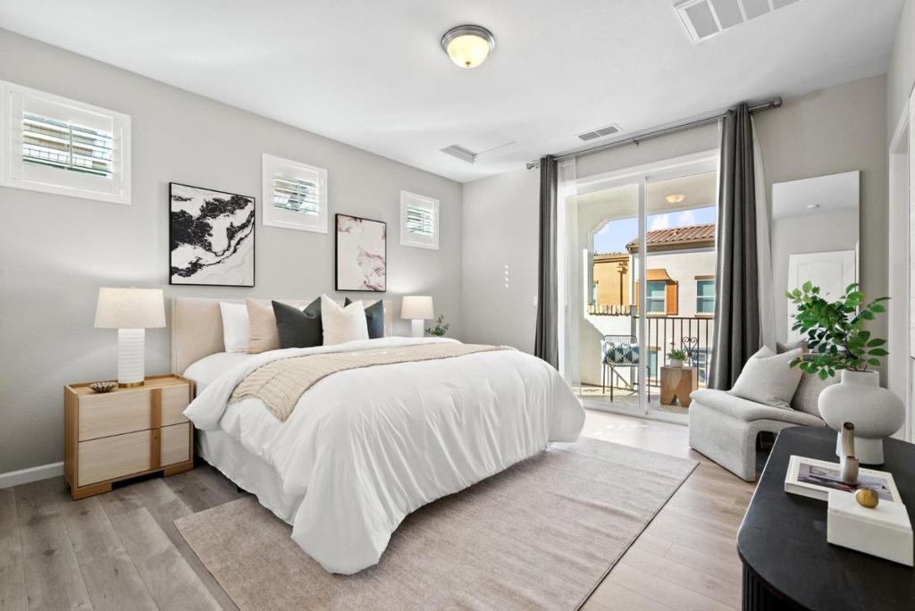 Welcome home to this light-filled Mediterranean-style three-story townhouse in Montecito Vista Community, tucked beside Communication Hill. With 2 bedrooms and 2.5 baths, the layout feels warm, inviting, and wonderfully private. Enter on the first level with direct access to the garage, featuring a 220-volt outlet ready for an EV charger. Upstairs, the main living level is designed for easy everyday living and entertaining, with an open concept kitchen and living area, designer cabinetry, stainless steel appliances, recessed lighting, and laminate wood flooring. Step outside to your covered balcony for morning coffee or evening unwinding. A convenient powder room and laundry area are also on this level, complete with a newer washer and dryer. The top floor offers two spacious bedroom suites, including a generous primary retreat with its own covered balcony, as well as a second bedroom and full bath thoughtfully situated on the same level. Freshly painted walls and baseboards add a clean, move-in-ready finish throughout. Enjoy close proximity to neighborhood parks and easy commuting via Caltrain and Santa Clara Valley Transportation Authority, plus quick access to Highways 87, 85, 280, and 101 for a smooth connection to Downtown and major employment hubs.