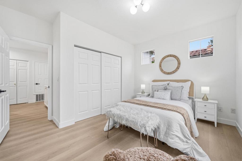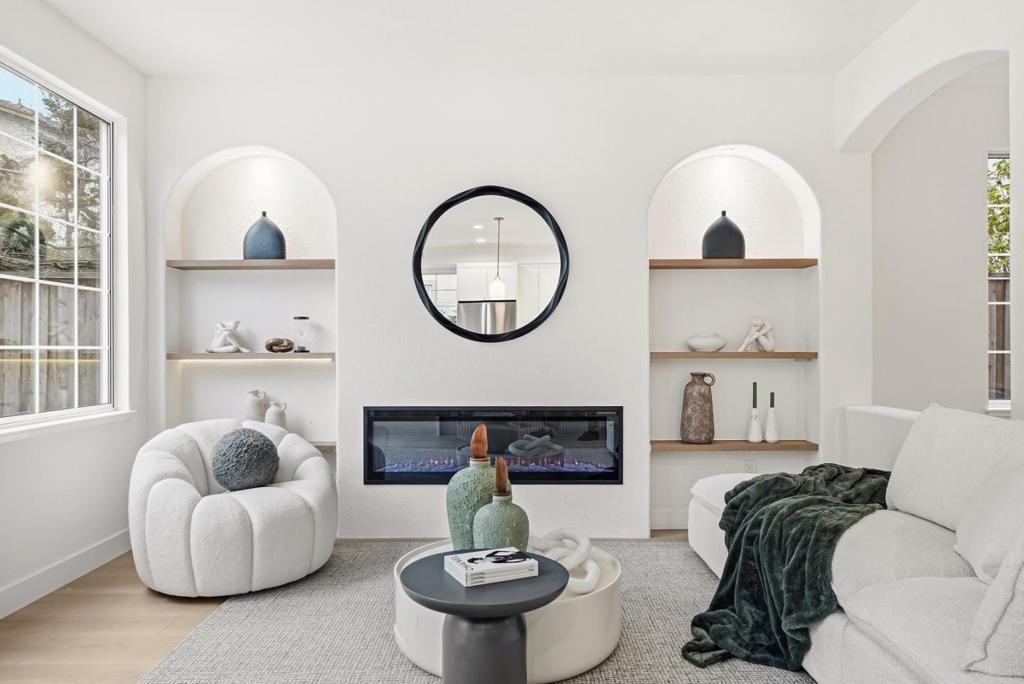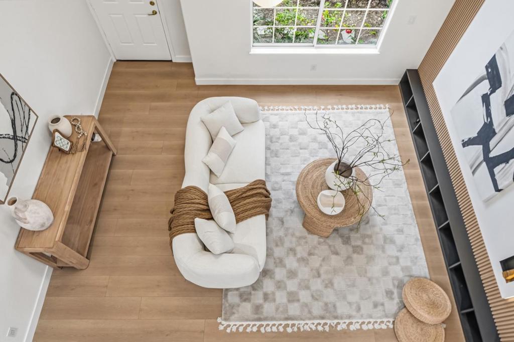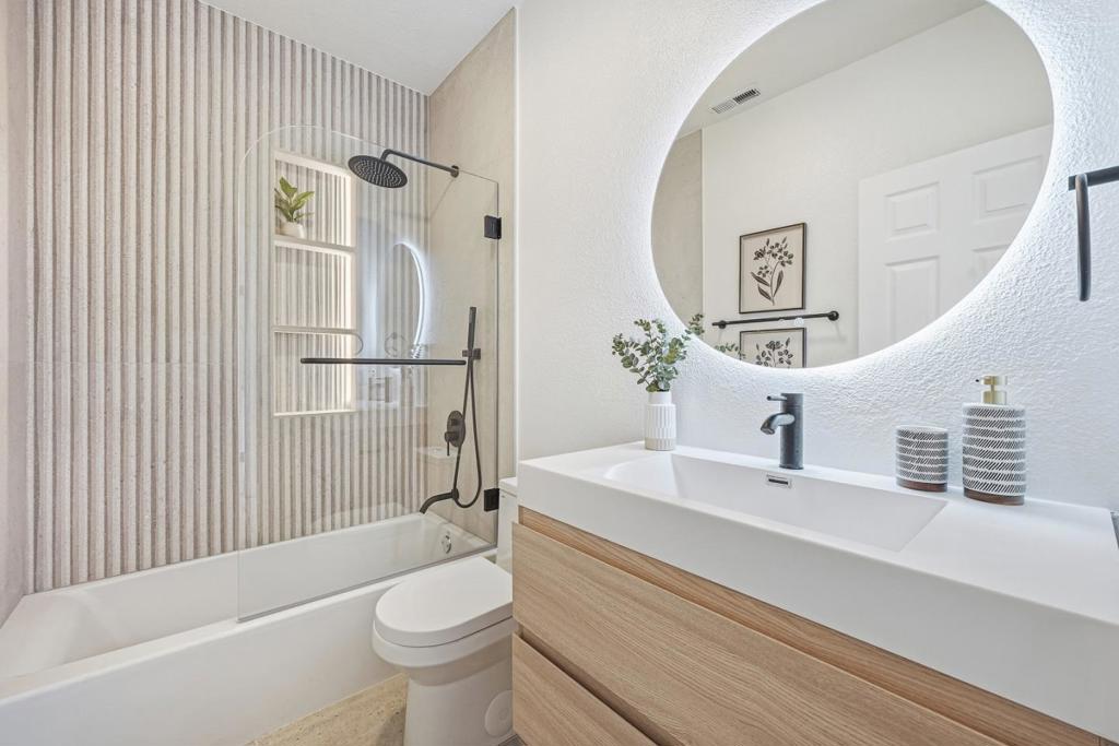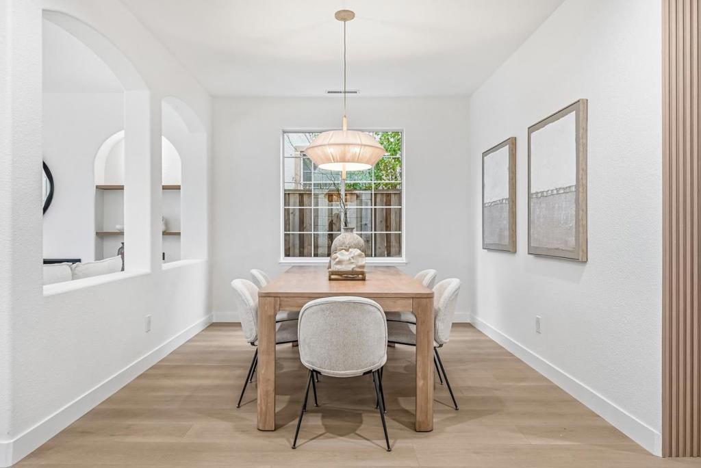 Nestled in one of San Joses most desirable locations, minutes from Santana Row, Valley Fair, and premier tech hubs, this two-story residence has been meticulously reimagined into a contemporary sanctuary. Seamlessly blending architectural interest with high-end finishes. this home is the ultimate turn key opportunity in the heart of Silicon Valley. The interior boasts a bright open flow defined by soaring vaulted ceilings and abundance of natural light. The main living area features a stunning custom media wall with white oak slat paneling and integrated shelving, while the secondary family room offers a cozy retreat with sleek fireplace and designer arched niches. New wide-plank flooring throughout and curated collection of designer light fixtures. A fully renovated kitchen featuring waterfall countertops, elegant white shaker cabinetry, and high end SS appliances. All bathrooms are completely new and modern, designer tile work, contemporary vanities, and premium fixtures. Downstairs bedroom and full bath provide the perfect setup for guests or multi-generational living. Plus two-car garage, central heating and AC. Cozy, low-maintenance backyard for outdoor lounging. Enjoy effortless commutes to Apple, Nvidia, Cisco etc. with world-class shopping and dining just moments away.