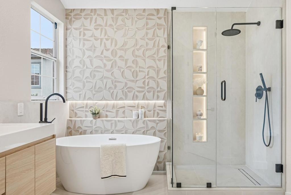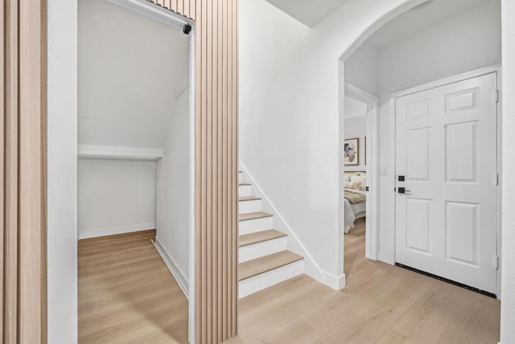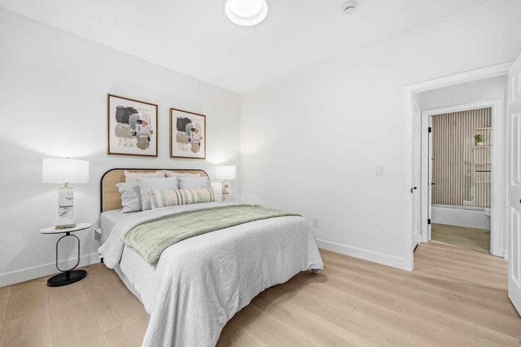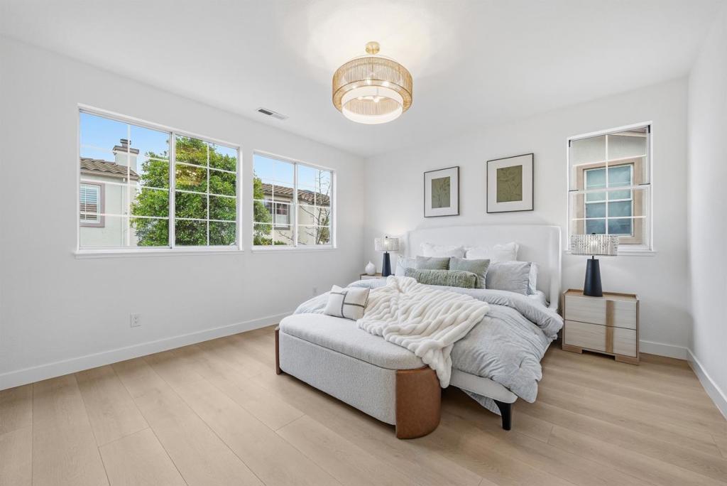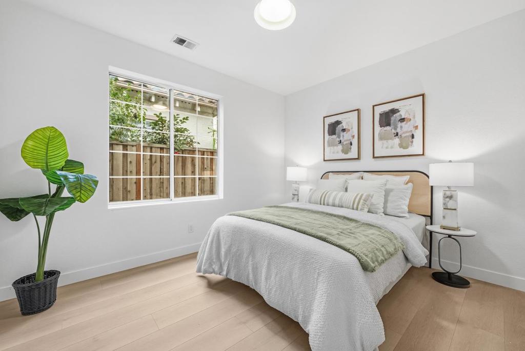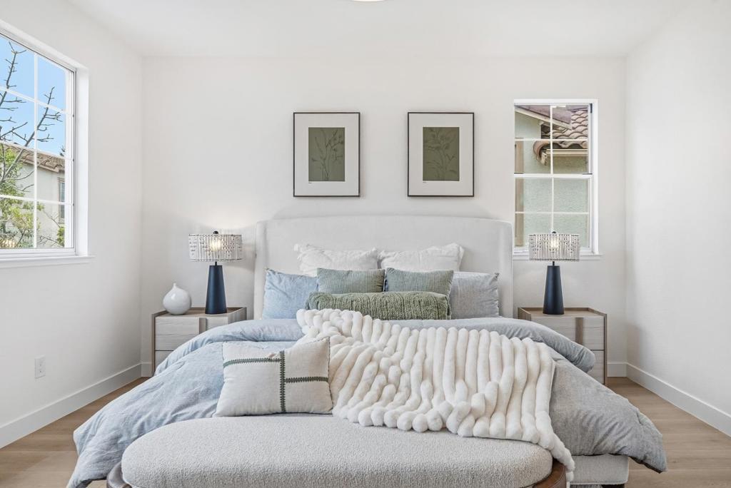 Nestled in one of San Joses most desirable locations, minutes from Santana Row, Valley Fair, and premier tech hubs, this two-story residence has been meticulously reimagined into a contemporary sanctuary. Seamlessly blending architectural interest with high-end finishes. this home is the ultimate turn key opportunity in the heart of Silicon Valley. The interior boasts a bright open flow defined by soaring vaulted ceilings and abundance of natural light. The main living area features a stunning custom media wall with white oak slat paneling and integrated shelving, while the secondary family room offers a cozy retreat with sleek fireplace and designer arched niches. New wide-plank flooring throughout and curated collection of designer light fixtures. A fully renovated kitchen featuring waterfall countertops, elegant white shaker cabinetry, and high end SS appliances. All bathrooms are completely new and modern, designer tile work, contemporary vanities, and premium fixtures. Downstairs bedroom and full bath provide the perfect setup for guests or multi-generational living. Plus two-car garage, central heating and AC. Cozy, low-maintenance backyard for outdoor lounging. Enjoy effortless commutes to Apple, Nvidia, Cisco etc. with world-class shopping and dining just moments away.