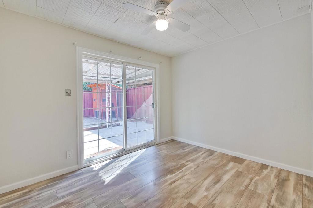 Welcome to this inviting 4-bedroom, 2-bath home that seamlessly blends comfort, style, and functionality. Step inside to discover a modern kitchen equipped with a gas range, microwave, dishwasher, and a spacious dining area perfect for gatherings. A ceiling fan with integrated lighting enhances comfort and adds a touch of charm. Durable vinyl plank flooring and linoleum flow throughout the home, providing both elegance and easy maintenance. Enjoy year-round coziness with forced air heating, while PG&E solar panels boost energy efficiency. Outdoors, a large backyard awaits, featuring a covered overhang ideal for outdoor dining or relaxing, a convenient tool shed, and plenty of grassy space for play or gardening. The attached two-car garage offers added convenience and extra storage. This move-in-ready home boasts modern upgrades, generous living space, and a fantastic yardeverything you need for comfortable living and effortless entertaining.