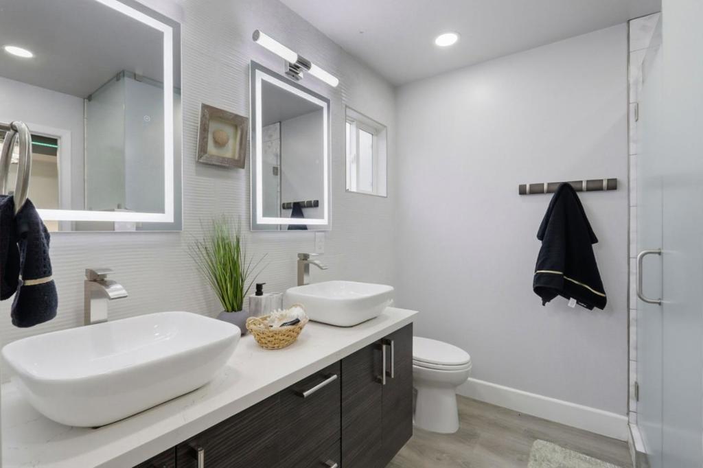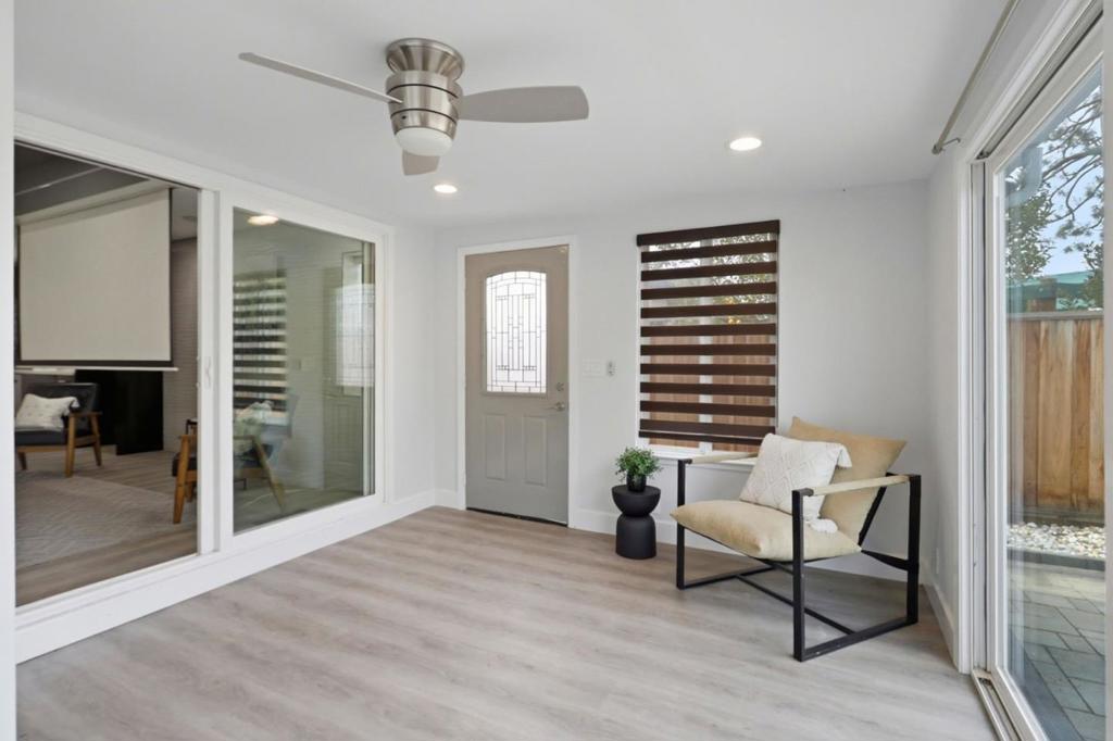 Exquisite North-East facing, fully remodeled 2,026 sq ft North-East facing home (1,856 sq ft + 170 sq ft sunroom) in the highly sought-after Berryessa neighborhood. This home features a stunning contemporary kitchen with quartz countertops, high-gloss cabinetry, Bosch appliances, winecooler, and a 13ft island with integrated dining perfect for entertaining. Over $500K in upgrades, permitted extension, and modern enhancements throughout. Highlights include luxury vinyl flooring, new copper plumbing, upgraded electrical, solar, radiant barrier roof insulation, noise-reducing Milgard windows, new HVAC ducts, recessed lighting, and a 7.1 in-ceiling home theater. Fully renovated bathrooms, professionally landscaped grounds with pavers and metal fencing, mature fruit trees, drip irrigation, a finished backyard office shed, and a durable tile roof complete this exceptional offering. Located in the top-rated Ruskin Elementary/Sierramont Middle/Piedmont Hills High school district (buyer to verify). Minutes to BART, Light Rail, I-680 & 237, Steps from the 39acre PenitenciaCreek & Cataldi parks, with trails, playgrounds, tennis, Close to Safeway, Costco, Sprouts, Ranch 99, and more. This is a rare opportunity to experience elevated, modern living in one of Berryessa most desirable pockets!!