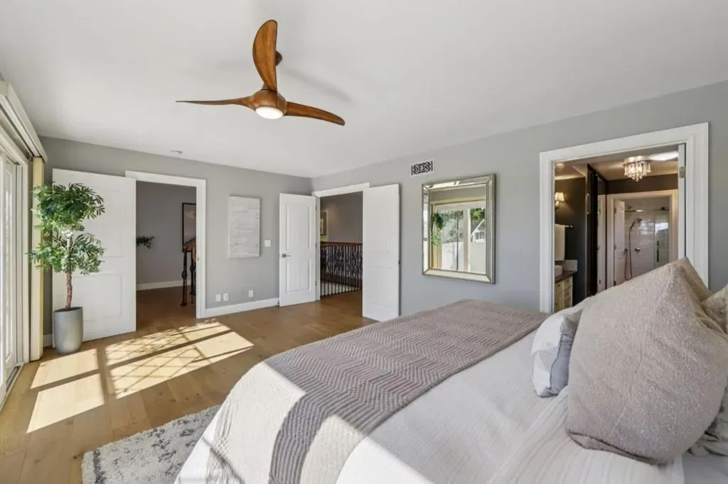 Built with exceptional craftsmanship and thoughtful upgrades throughout, this home offers comfort, efficiency, and modern living at its finest. Situated on an expansive ~13,204 sq ft lot, the residence features approximately 2,253 sq ft of living space with 5 bedrooms and 3 bathrooms ideal for both everyday living and entertaining. A designer-paved driveway sets the tone, while the interior showcases solid-core doors, rich oak flooring, custom stairway, upgraded bathrooms, and sleek finishes throughout. Double-pane windows and Hunter Douglas smart blinds provide abundant natural light and modern convenience. The chefs kitchen is well-appointed with soft-close cabinetry, Thermador cooktop, Bosch oven and dishwasher, custom storage solutions, and a spacious designer pantry. The primary suite offers a spa-like bath with digital shower system, curbless walk-in shower, heated floors, and premium fixtures. Smart home features, built-in speakers, and enhanced connectivity are integrated throughout. The private backyard offers mature landscaping, fruit trees, and garden space. Ideally located within walking distance to top-rated schoolsNorwood Creek Elementary, Quimby Oak Middle, and Evergreen Valley High and close to parks, trails, and everyday amenities.