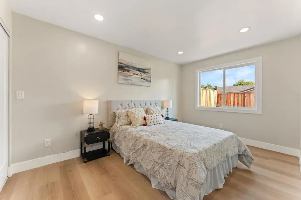 Completely rebuilt like new! This stunning 4-bedroom, 2-bath home was taken down to the studs and rebuilt throughout. Features new framing, insulation, drywall, texture, and finishes. Brand-new slate roof with 100-year lifespan, brand new 200amps electric main panel and sub-panel, brand new electric wires, brand new waterproof vinyl flooring, new doors, and new double-pane windows. Bright open layout with recessed lighting throughout. Modern kitchen with waterfall island, two-tone custom cabinets, and new stainless-steel appliances. Luxury bathrooms with smart toilets. Primary suite includes walk-in closet. Finished garage with epoxy flooring. New energy-efficient HVAC system, new landscaping, and spacious concrete patio in the backyard.