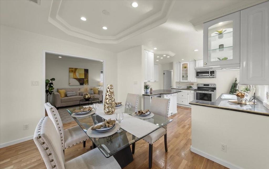 Stunning Cambrian home in a highly desirable, family-friendly neighborhood with top-rated schools: Sartorette Elementary, Price Middle, and Branham High. Boasting exceptional curb appeal with a landscaped front yard and inviting patio, this spacious 5-bedroom, 3-bath residence offers the ideal blend of comfort and modern updates. A grand entry with soaring vaulted ceilings welcomes you inside, where newly refinished hardwood floors, fresh interior paint, and abundant natural light create a warm and elegant atmosphere. The thoughtfully designed floor plan includes two bedrooms and a full bathroom on the main level, perfect for guests or extended family. The remodeled kitchen features stainless steel appliances, recessed lighting, and flows seamlessly into the formal dining and living areas, complete with a cozy gas fireplace. Upstairs, the spacious primary suite offers a private retreat with a beautifully updated bathroom, tile shower, modern vanity, and walk-in closet. A large bonus living room with a kitchen provides flexible space for a playroom, media room, or family hangout. Additional bedrooms are generously sized, including a unique split-level layout ideal for sharing. The generous backyard is perfect for entertaining and kids play.