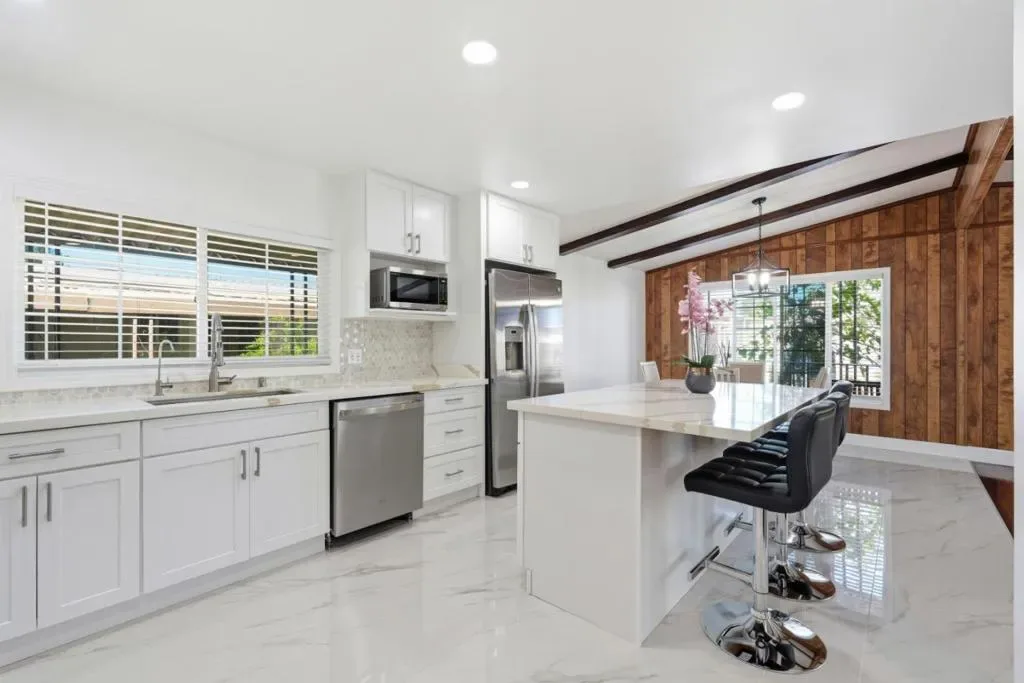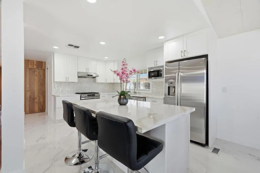 Discover this beautifully updated 2-bedroom, 2-bathroom home, perfectly situated in one of San Jose’s most desirable, family-friendly communities. ** Thoughtfully upgraded throughout, this home offers a perfect blend of comfort and functionality**Interior Highlights Experience a perfect blend of modern sophistication and cozy charm. This meticulously updated 2-bed, 2-bath residence is designed for those who appreciate quality. Gourmet Kitchen: Featuring stunning quartz countertops, a large center island, and premium stainless steel appliances. Designer Finishes: Inviting living area with exposed ceiling beams, rich laminate flooring, and contemporary white tile. A private retreat boasting dual sinks, massive storage, and a luxurious walk-in shower.