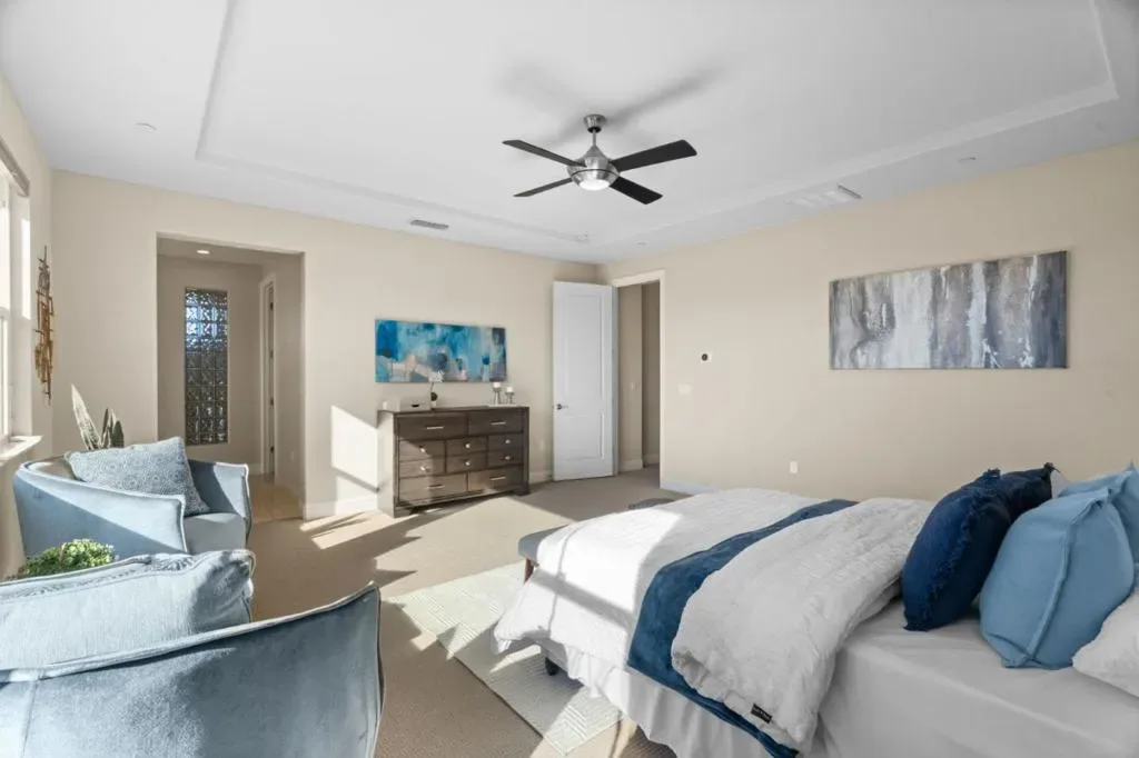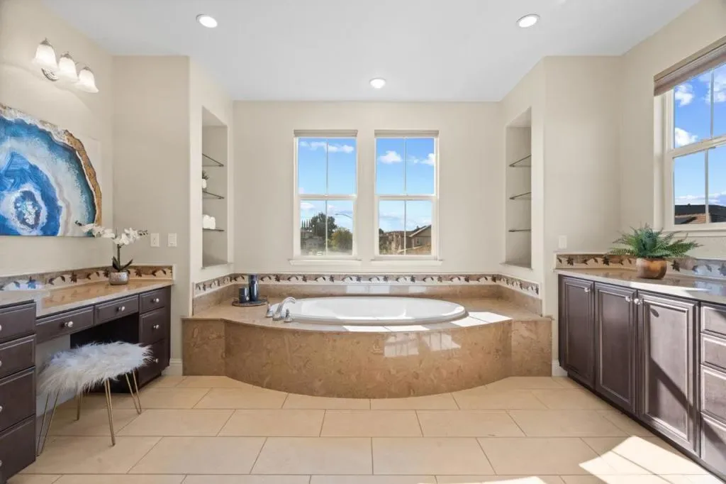 EXCLUSIVE HILLTOP VIEW HOME | Perched on a corner lot along a private hilltop culdesac, this spacious residence by Tri Pointe Homes faces the eastern foothills and provides spectacular vistas, indoor- outdoor spaces, and two primary suites (including one on ground level). A stunning entry leads into a series of gathering rooms, thoughtfully anchored by a spectacular kitchen remodel with vast island, Thermador® appliances, and walk-in pantry. Dual rear patios are perfect for entertaining! Escape to splendor in the upper primary suite, boasting an immense custom closet and palatial bath. Solar energy, tankless hot water, video doorbell, surveillance, and smart climate control provide cutting-edge convenience. Includes a three-car garage with EV charging, dual-sided fireplace, custom Graber® shades, approx. $70K of upgraded wood floors, upper laundry, home office, and versatile media/playroom. Minutes from parks, golf, shopping, commuter routes, and more!