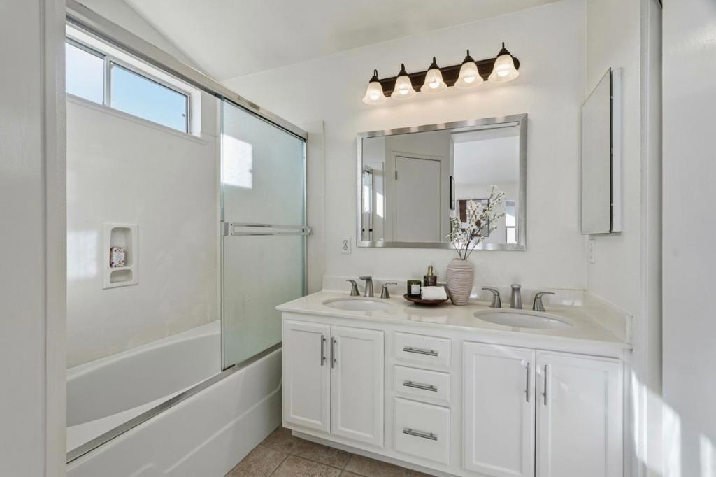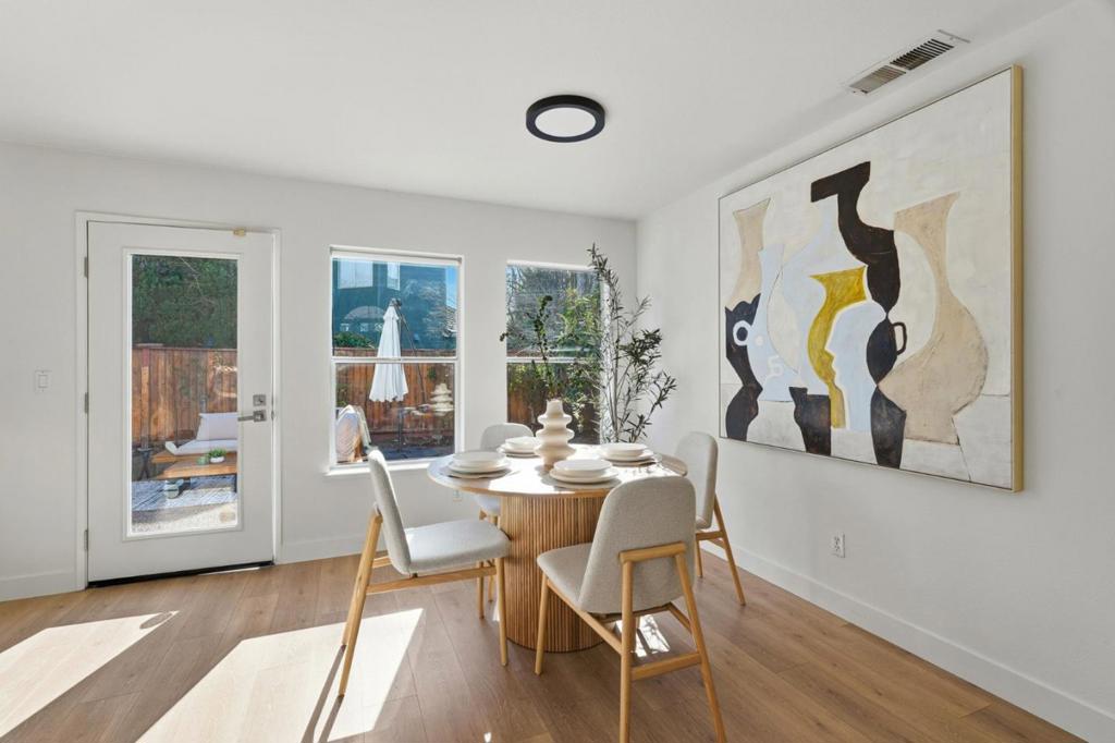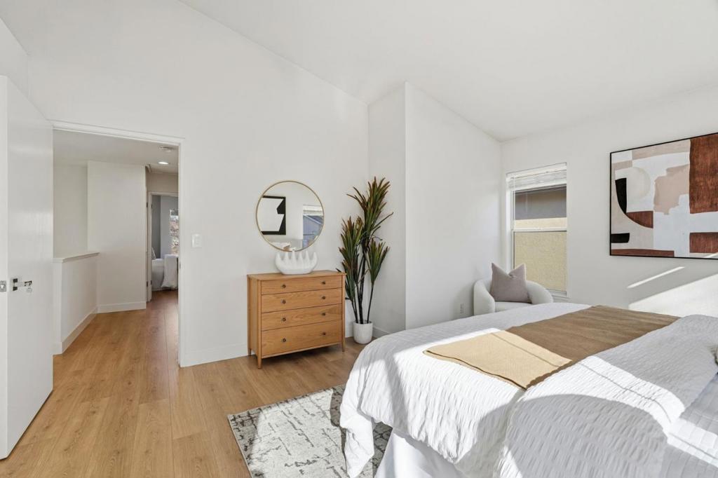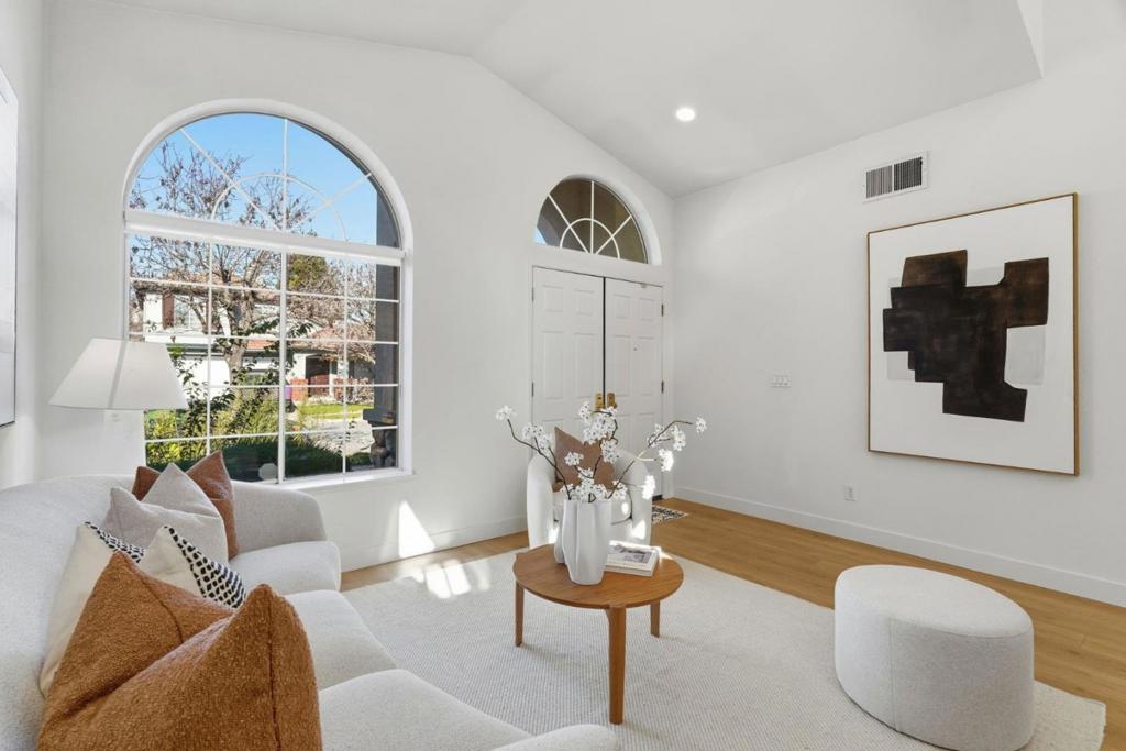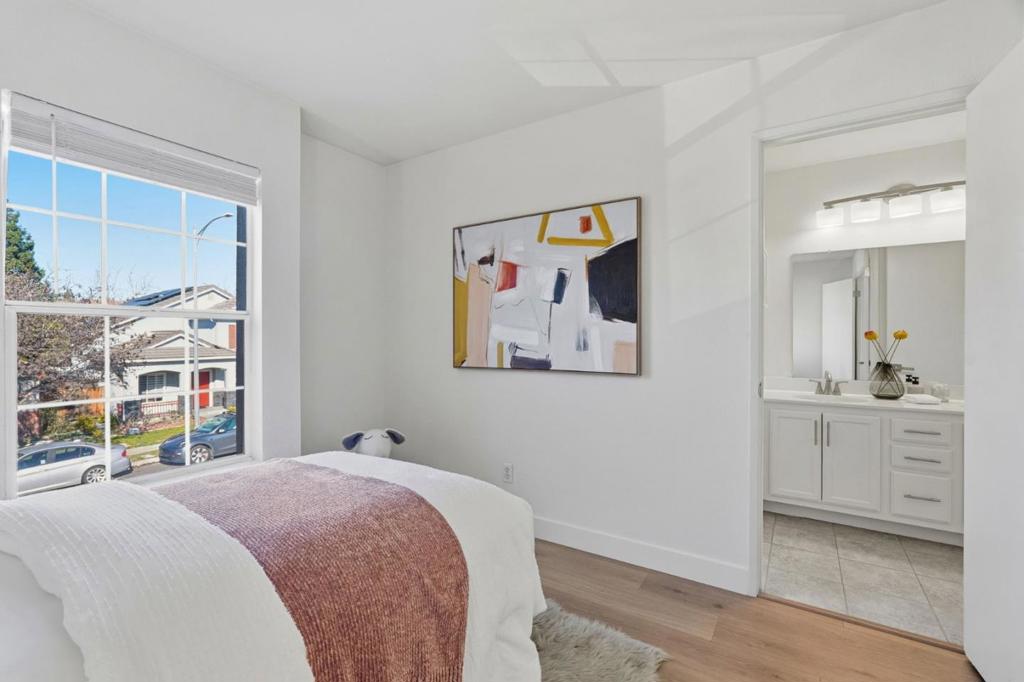 This beautiful 1,417-square-foot single-family home, built in 1996 and located in the 95134 of San Jose, offers 3 bed and 2.5 bath in an exceptional location and condition. The open floor plan is filled with abundant natural light, showcases stylish flooring and vaulted ceilings in the main living area and primary suite. The chefs kitchen is well appointed with quartz slab countertops, LED recessed lighting, new dishwasher, and newer appliances. A spacious dining area features direct access to the backyard, complemented by a convenient first-floor powder room. Upstairs, the bright and spacious primary suite boasts vaulted ceilings, a walk-in closet, and a primary bathroom with dual vanities. The generously sized, low-maintenance backyard is ideal for entertaining. Additional highlights include a durable tile roof and an unbeatable location with easy access to major high-tech employers, walking distance to restaurants, parks, Levis Stadium, and Rivermark Plaza. Excellent Santa Clara schools are nearby A must see!