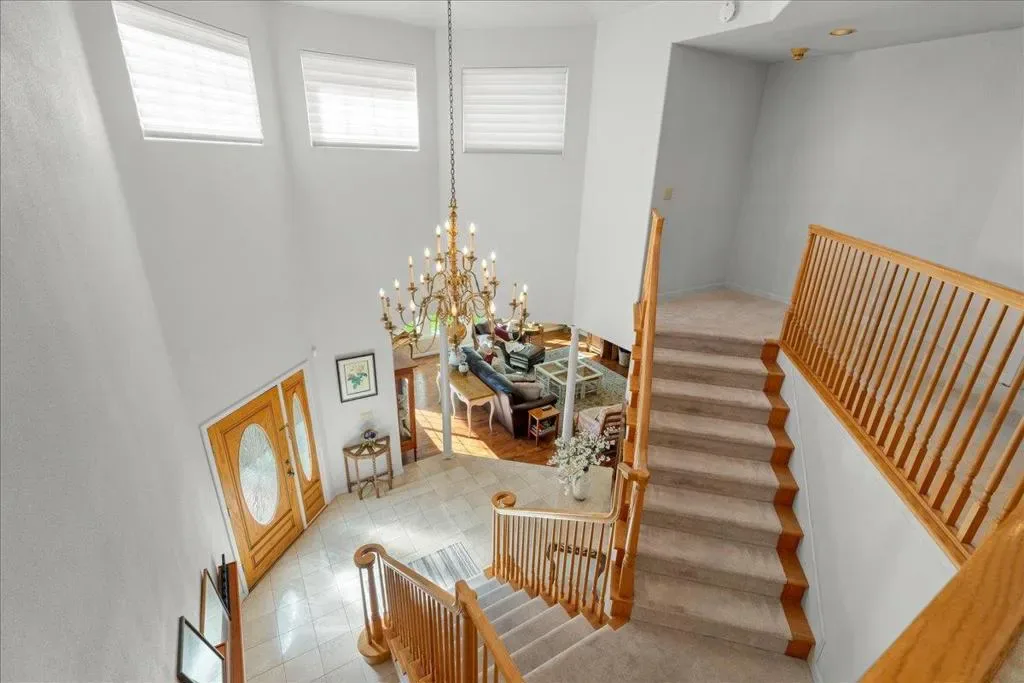 Beautiful 5-bedroom, 3.5-bath home featuring a dramatic entry with stylish staircase and soaring ceilings that fill the home with natural light. The first floor offers 3 bedrooms, 2.5 bathrooms, an open kitchen, and a spacious living room with vaulted ceilings. Large laundry room includes built-in ironing board, drying rack, laundry chute from the second floor, and extra storage. Upstairs features two additional bedrooms, including an impressive primary suite with built-in office, sitting area with fireplace, dual walk-in closets, soaking tub, stall shower, and dual sinks. Peaceful private backyard surrounded by mature shade trees. Excellent San Jose location with top-rated schools: Alta Vista Elementary (10/10), Union Middle (9/10), and Leigh High (10/10). Easy commute near major highways and shopping.