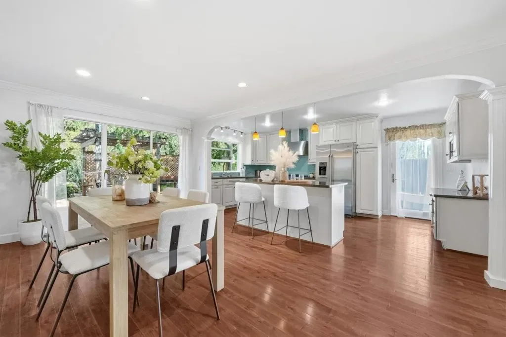 Beautiful home located on a cul-de-sac in the highly desirable Cambrian Park neighborhood. Situated on an expansive 10,000+ square foot lot, this property offers the perfect blend of modern comfort and incredible future potential. Whether you envision a large ADU (buyer to verify), a sparkling pool, or a garden oasis, this sprawling lot is a rare find. Flooded with natural light, this home offers a comfortable and functional layout perfect for everyday living. The inviting living room welcomes you with a cozy fireplace and a large bay window overlooking the striking front landscape. The kitchen boasts a large island, ample cabinetry, a gas stove, and a garden window overlooking the lush backyard. The separate family room opens seamlessly to the kitchen and features a glass slider leading to the deck, where you can relax and enjoy peaceful outdoor views. The luxurious master suite includes a walk-in closet and a double-door that opens to the backyard retreat. Thoughtful upgrades throughout include updated bathrooms, gleaming wooden flooring, recessed lighting, and central A/C. Enjoy easy access to Highways 85 and Almaden Expy. Just minutes from shopping and dining at Almaden Plaza, Costco, Whole Foods, Trader Joe’s, and more. A wonderful home not to be missed!