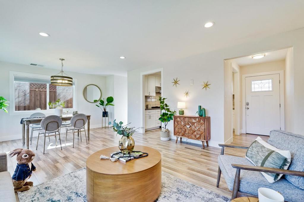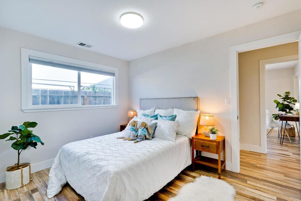Bright and move-in-ready Cambrian Park home showcasing a thoughtfully designed layout that lives larger than its square footage, filled with natural light and seamless indoor-outdoor flow. The gourmet kitchen features timeless shaker cabinetry, sleek quartz countertops, and stainless steel appliances, opening effortlessly into the main living spaces, perfect for everyday comfort and entertaining. The private primary suite offers a generous walk-in closet and a well-appointed dual-sink vanity, creating a peaceful retreat. Recent upgrades include a new garage door, epoxy-coated garage flooring, and built-in overhead storage for added functionality and organization. The front yard is beautifully designed with custom seating and privacy fencing, while the expansive paver backyard truly elevates the property. This oversized space offers incredible flexibility for al fresco dining, gardening, or recreation. There is ample room to create a pickleball court or multi-sport area, along with potential future ADU expansion (buyer to verify). Owned solar panels, an EV charger, and a dedicated laundry room provide modern efficiency. Ideally located near the San Jose Public Library, De Anza Park, Whole Foods, and top-rated Branham High School.