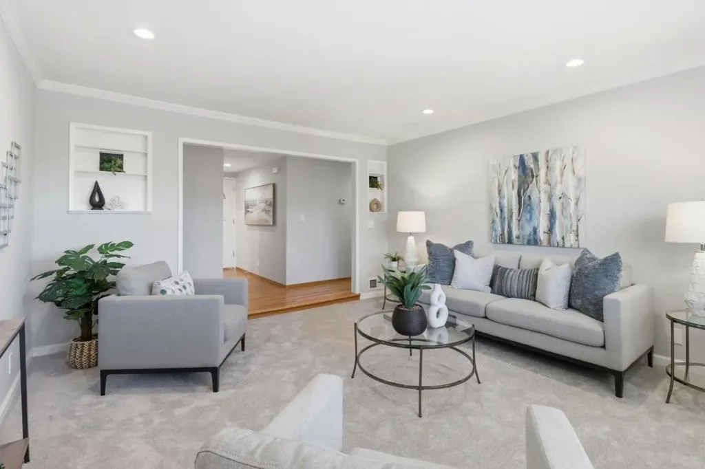 Welcome to this fantastic 4-bedroom, 2-bathroom home located in a great Cambrian area. With approximately 1,700 square feet of living space, this residence offers a comfortable and inviting atmosphere with a family room with fireplace and exposed beam wood ceiling. The refreshed kitchen features Quartz counters, new double oven, cooktop range, dishwasher, oversized SS sink, and recessed lighting. There are gleaming hardwood floors in Kitchen, Dining Area and bedrooms. Remodeled hall bath has new tile flooring, vanity, tub and quartz solid surround above tub, and new plumbing fixtures,. The primary bath has new tile floor , new vanity, new shower with quartz solid walls. Relax in your step-down living room with new carpeting, and recessed lighting, Additional amenities include central heat and AC, convenient dining area, ideal for csasual meals, new blinds and recessed lighting inlight fixtures. The property also includes a two-car garage, offering plenty of storage and parking space. Situated within the highly rated Union Elementary School District, The rear yard is perfect for entertaing with raised garden beds with beautiful stone and brick, & many fruit trees. Don’t miss the opportunity to make this beautiful home your home!!