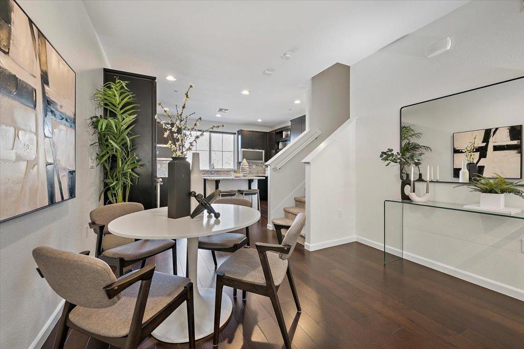 Welcome to Avenue One where modern design meets effortless living. This beautifully appointed townhome offers light-filled spaces, thoughtful separation of living areas, and a layout designed for comfort & connection. The bright and spacious interior includes a private ground-lvl BR w full bath ideal for guests or office. Upper levels provide excellent privacy: a primary suite w/ soaring ceilings & a generous walk-in closet along with an add’l en-suite BR. An attached side-by-side 2-car garage offers ample storage. The main living lvl showcases a stunning gr8 room w/ hardwood flooring and a gourmet kitchen complete with an island, granite slab countertops & backsplash, SS appliances, gas range w/ exhaust hood refrig & microwave. A conveniently located upper-level laundry rm incl washer & dryer. This home is enhanced with numerous upgrades including whole-house water softener, fresh interior paint, plush carpeting, recessed lighting, shutters, HVAC, Nest thermostats, and Ring doorbell. Ideally situated in a desirable location within the community, the home enjoys ample parking, open exterior seating, play space, resort-style pool, spa, fitness center, spin rm, clubhouse, tennis courts, outdoor exercise areas, scenic trails, pet park & convenient access to nearby retail centers.