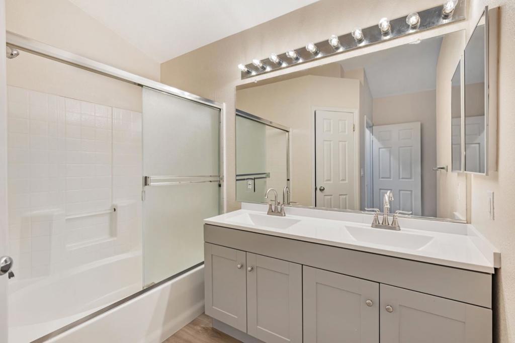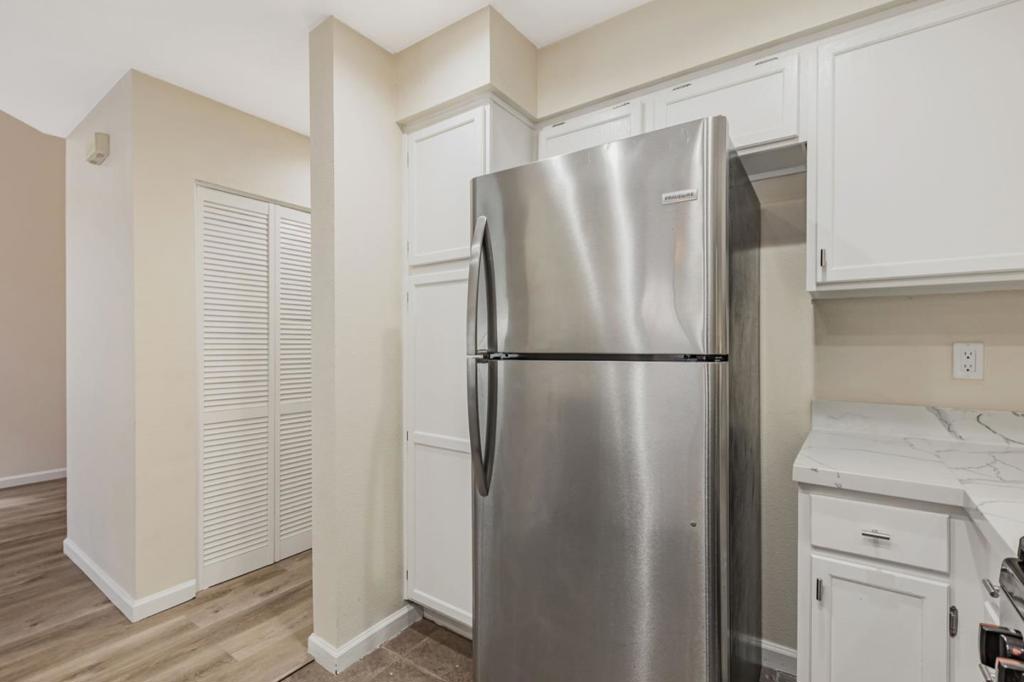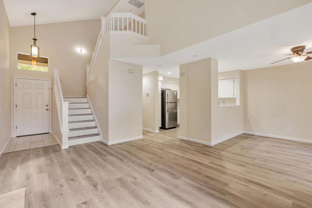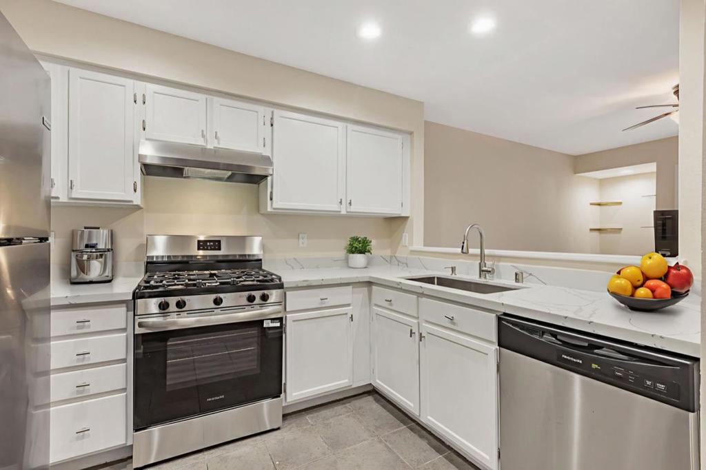 Welcome to this charming home located in the vibrant city of San Jose. This corner unit townhouse features three bedrooms, including a convenient ground floor bedroom, complemented by three full bathrooms with updated amenities such as double sinks, and an oversized tub in the primary. The kitchen is equipped with quartz countertops, new gas cooktop/oven range, new dishwasher, refrigerator, and a hood over range. The house has been fully painted , New LVF flooring throughout except kitchen and bathrooms, new quartz counter tops in kitchen and bathrooms, new vanities in all bathrooms and refinished kitchen cabinets. New recessed LED lightings throughout. Enjoy the central AC for comfort, and cozy up by the fireplace on cooler evenings. The home boasts high ceilings and LVF and tile flooring that add to its allure. Washer and dryer are included for easy laundry access. The property offers a one-car garage and 1 assigned parking space infant of the unit. Residents can also access a community pool for leisure, Volley ball & basketball courts just across the parking spaces. This home is situated in the Oak Grove Elementary School District. With all these wonderful features, this home is ideal for those seeking comfort and convenience in San Jose.