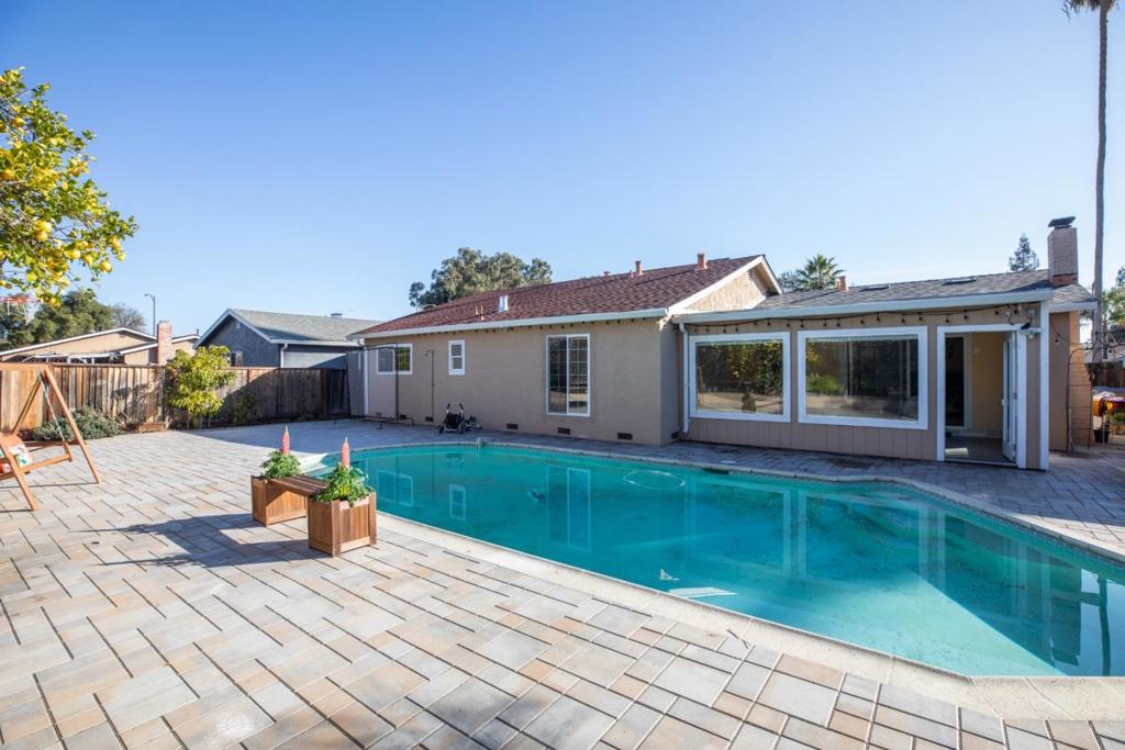 Welcome to one of the best values for a 4 bedroom-2 bath home in Alamden Valley. (95120) Walk to top ranked Los Alamitos Elementary School and Castillero Middle School. This home has an Inviting courtyard entrance, hardwood style flooring throughout, beautifully remodeled bathrooms, dual paned windows, and a wonderful family room with fireplace and kitchen with a granite island, bright skylight, and gas stove. Enjoy the great party/sunroom looking over the expansive backyard with gorgeous pool, paver style decking, pergola, fruit trees,outdoor shower and space for kids trampolines or basketball hoops! Tons of storage in the sleek dining room sideboard and beautifully renovated bathrooms with tile and glass. The garage is complete with a Tesla charger. This convenient home is a quick walk to Lucky shopping Center and easy access to Pioneer High School, Hwy’s 85 & 87, Almaden Expressway, Costco, Whole Foods, Oakridge Mall and numerous other shops and restaurants.