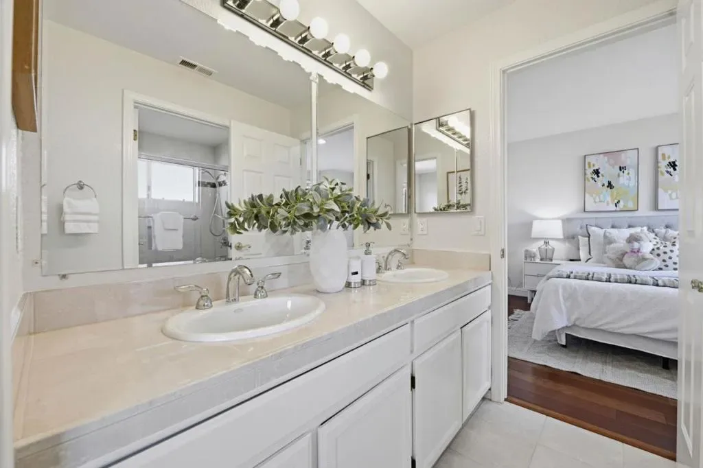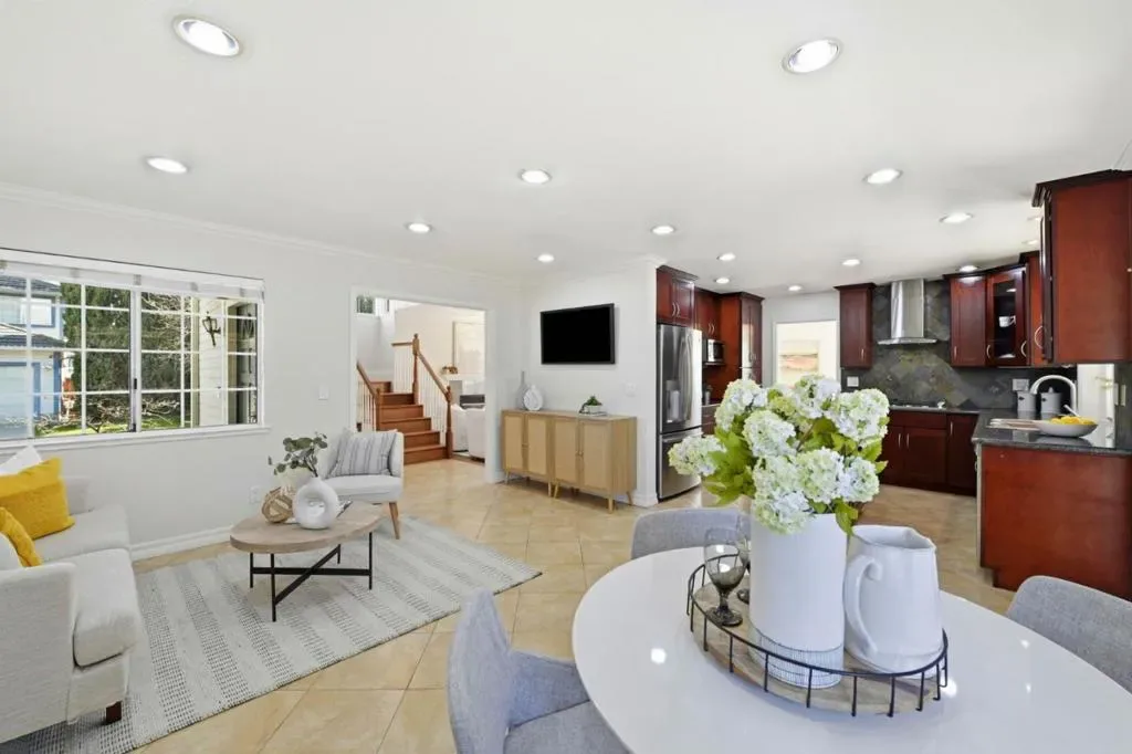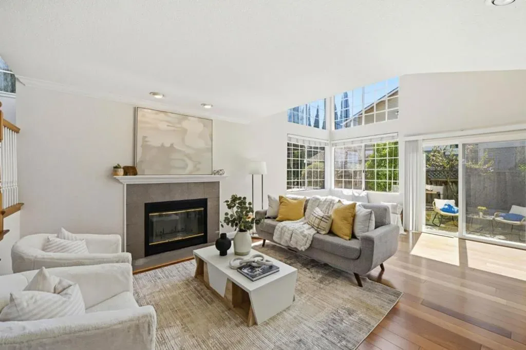 Tucked at the end of a private enclave on McAbee Road, this beautifully appointed two-level home offers 3 bedrooms, 2.5 baths with 2,243± square feet of thoughtfully designed living space on a generous lot. From the moment you arrive, the meticulously landscaped front yard, complete with river rock accents, roses, and a graceful Japanese maple, sets a tone of elegance and care. Inside, rich Brazilian Cherry hardwood floors, crown molding, and abundant natural light create warm, inviting living spaces, while the gourmet kitchen shines with cherry cabinetry, granite slab countertops, and premium stainless-steel appliances. The luxurious primary suite features a cozy fireplace, skylights, a spa-inspired bath with a deep soaking tub and rain shower, and serene hillside views. Outdoors, enjoy a private retreat enhanced by flagstone accents, multiple fruit trees, and inviting spaces perfect for relaxing or entertaining, all with convenient access to nearby schools, parks, trails, and shopping.