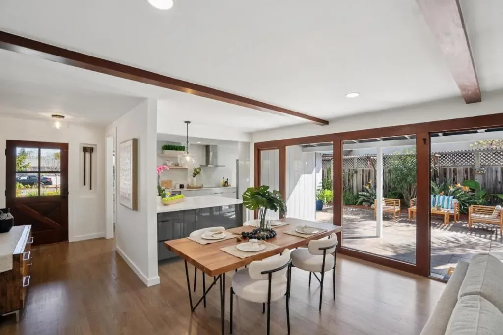 Welcome to this beautifully updated home with an ADU(408 SqFt.) blends timeless character with modern comfort in a convenient San Jose location. Exposed beam ceilings and large picture windows create a bright, airy living space, bringing natural light and peaceful garden views indoors. The open-concept living and kitchen area offers a wonderful sense of space and connection to surrounding greenery. The main residence has been thoughtfully renovated with refinished flooring, fresh interior paint, and updated kitchen and bathrooms featuring high-quality contemporary cabinetry and premium Bosch appliances, creating a stylish, move-in-ready home for comfortable living and entertaining. Adding flexibility, the property includes an ADU with its own kitchen and bath, ideal for guests, extended family, or a private office. Ideally located for Silicon Valley professionals, the home offers convenient access to major tech campuses approximately 10 minutes to Apple Park, 15 minutes to Nvidia, and about 10 minutes to Adobe in downtown San Jose. With its tranquil garden setting, modern updates, income potential, and prime Silicon Valley location, this home offers an exceptional lifestyle opportunity.