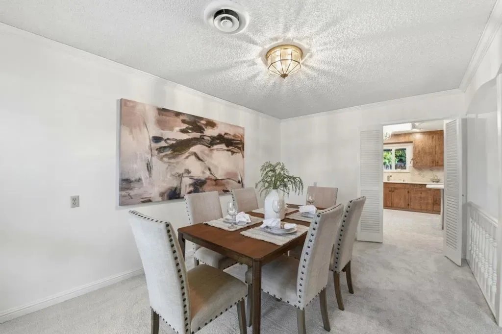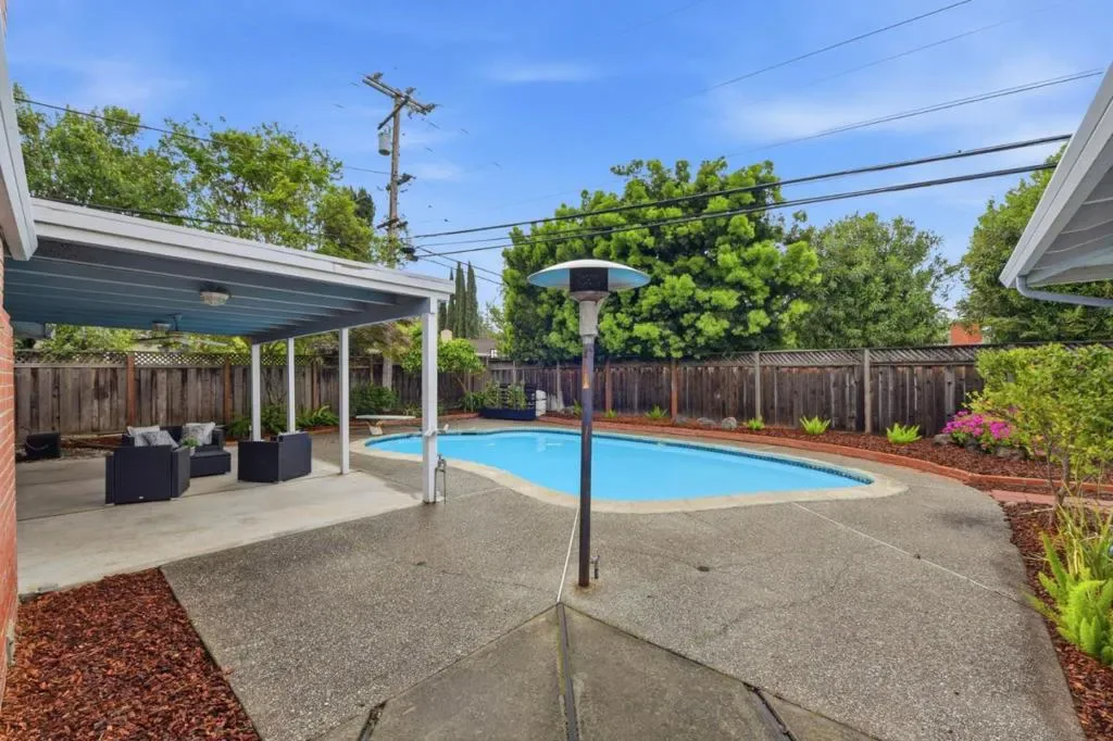This five-bedroom, two-and-a-half-bath residence in San Joses desirable Almaden Valley offers approximately 2,546 square feet of living space on a spacious 9,500-square-foot lot. The home features a light-filled living room with fireplace, formal dining room, and a welcoming family room that opens to the kitchen with breakfast bar, ideal for everyday living and entertaining. Fresh interior paint, new carpet, and dual-pane windows enhance the homes comfort and appeal. The primary suite offers ample closet space and a double-sink vanity with direct access to the backyard. Additional highlights include central air conditioning and a three-car garage. Step outside to a beautifully landscaped backyard complete with a large covered patio and sparkling pool, perfect for relaxing or hosting. Located within the highly regarded Simonds Elementary, Castillero Middle, and Leland High school boundaries, this home combines generous indoor space with exceptional outdoor living in one of Almaden Valleys most established neighborhoods.