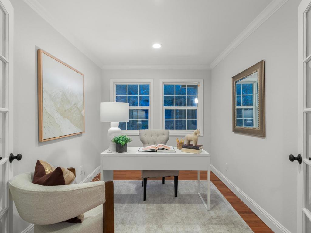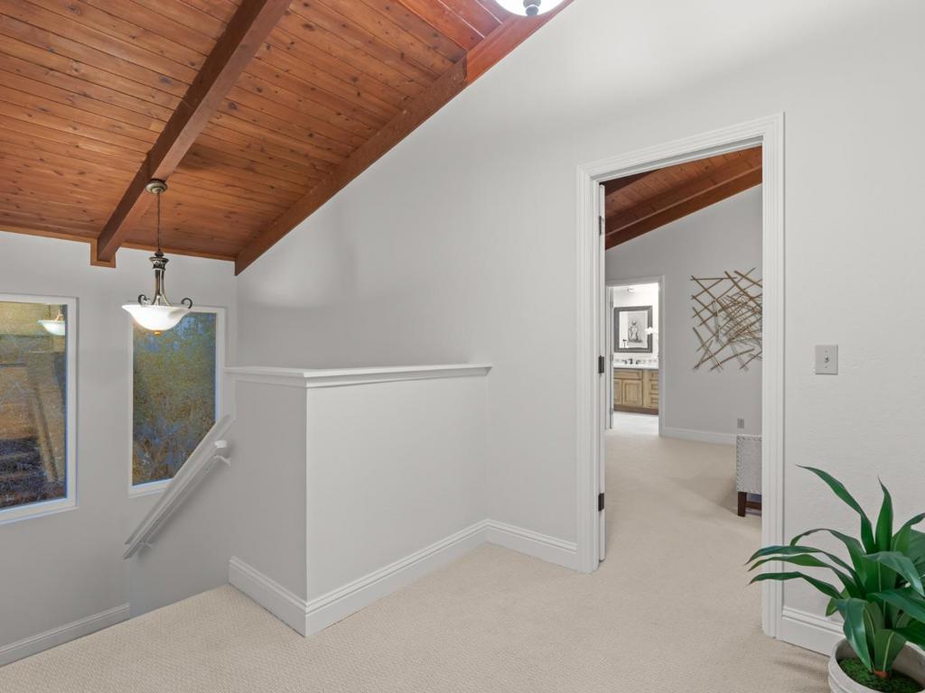 Nestled at the top of a quiet cul-de-sac in the desirable Almaden Country Club, 6834 Rockview Court offers a rare combination of privacy, views, and livability on an expansive 27,400± sf lot. This 4-bedroom, 2.5-bath home (three bedrooms plus a dedicated office) spans approximately 2,792± sf and is set in a serene, park-like setting with virtually no through traffic. The spacious kitchen features hardwood floors, extra-large island, stainless steel appliances including a commercial-grade 5-burner Frigidaire gas range, and a large pantry; ideal for everyday living and entertaining. The gorgeous living room showcases soaring stained wood-plank ceilings, a wood-burning fireplace, and large windows that frame stunning views of the Almaden hills and Quicksilver Park. French doors open to a perfectly positioned office, while the family room offers generous space and oversized windows. The spacious primary bedroom includes a vaulted ceiling, walk-in closet, and sliding door to a private patio, and an updated ensuite bath featuring dual sinks, stall shower, and soaking tub. Two additional bedrooms are upstairs. The expansive backyard boasts a large private deck, tree swing, and peaceful natural surroundings – your own retreat in the hills. You’ll love it!