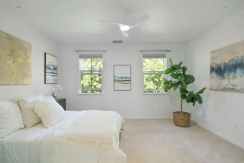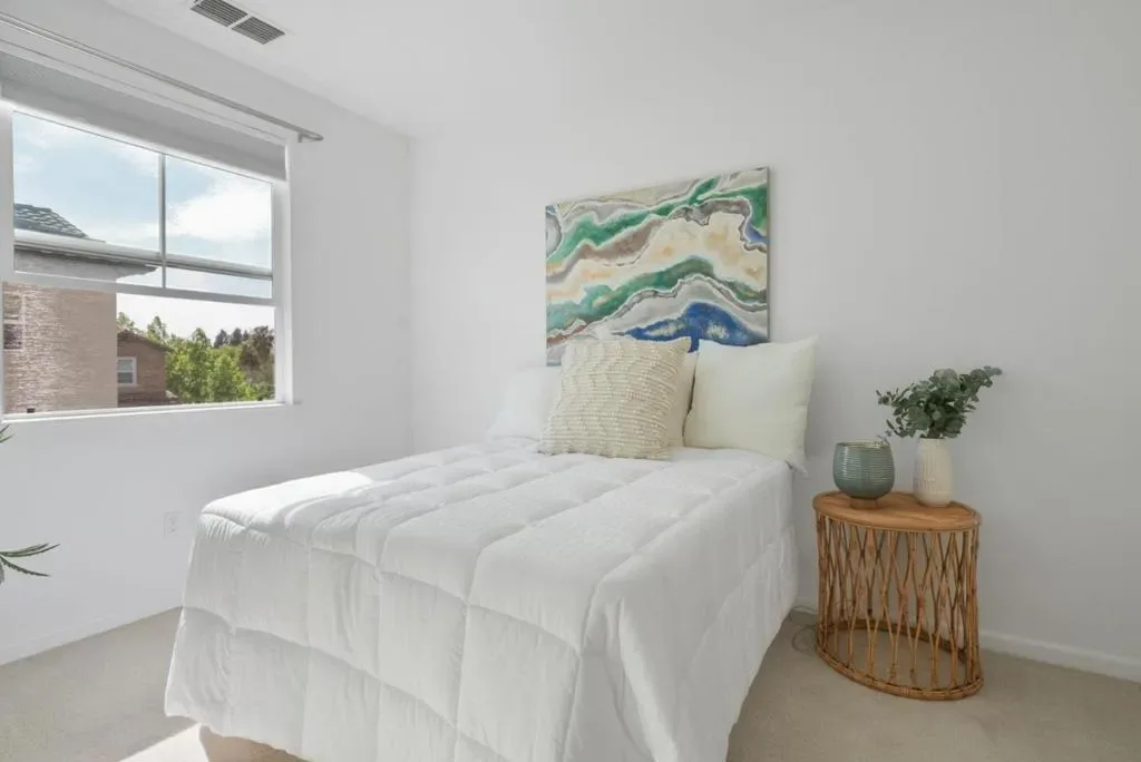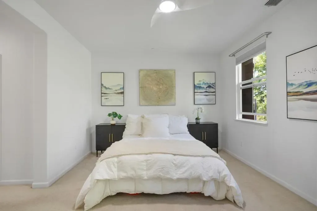 COMMUTERS DREAM | Impeccably maintained, move-in ready east-facing townhome in desirable Berryessa offering 1,522 sq ft with 3 bedrooms & 3 full baths. Bright, open-concept floor plan showcases soaring ceilings, abundant natural light, hardwood flooring in main living areas & mountain views from the living room & balcony. Updated kitchen features granite countertops & backsplash, stainless steel appliances, pantry, generous cabinetry & breakfast bar; perfect for everyday living & entertaining. Spacious primary suite includes a walk-in closet, dual-sink vanity, private toilet room, additional storage & sitting/office area. Upstairs secondary ensuite plus a main-level bedroom w/adjacent full bath provide ideal flexibility for guests, home office or multi-generational living. Welcoming entry w/large coat closet. Attached 2-car garage w/epoxy flooring, bright lighting, built-in shelving & ample storage. Additional highlights include central A/C, dual-pane windows, recessed LED lighting, & in-unit laundry. HOA covers water, garbage, roof/exterior maintenance, plus the park & play area. Prime location near Light Rail, BART, major bay area freeways, shopping (Costco, H Mart, Ranch 99, Great Mall), parks & top Silicon Valley employers including Google, Apple, NVIDIA, Cisco & Adobe.
