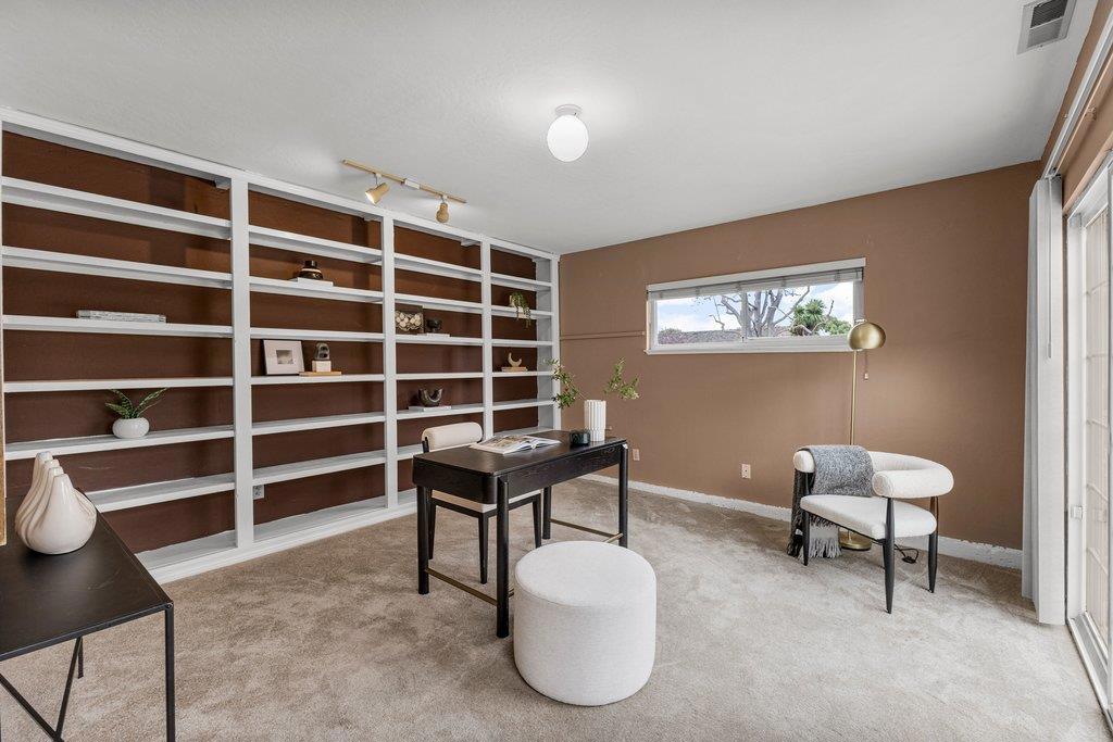 Beautifully remodeled ranch home tucked away on a quiet cul-de-sac in the highly desirable Lynhaven neighborhood of West San Jose. This updated residence blends timeless charm with modern comfort and functionality. The gourmet kitchen is the heart of the home, featuring custom cabinetry, granite countertops, and a tiled dining areaperfect for everyday living and entertaining. Both bathrooms have been tastefully remodeled with custom vanities, quartz countertops, tiled showers, and designer fixtures. Hardwood floors flow throughout the home, complementing the living room’s classic brick fireplace. A spacious family room offers flexible space for gatherings, work-from-home needs, or relaxation. The generous primary suite features a walk-in closet and an ensuite bath with dual sinks and a step-in shower. Additional upgrades include high-efficiency heating and air conditioning. A large laundry room with ample storage connects to a spacious office with a separate entrance and built-in bookcases, ideal for remote work, creative use, or a small business. Plenty of parking allows comfortable living without reliance on a traditional garage. Located near parks, schools, shopping, dining, and major commuting routes, this home offers an ideal balance of convenience and lifestyle.