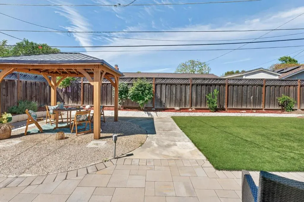 East-facing 4-bedroom home near Easterbrook Discovery (K8) and Challenger School, beautifully upgraded and located in a prime Silicon Valley location near major tech campuses. This home blends modern comfort with timeless charm. The beautifully maintained features a fully remodeled kitchen and bathrooms with sleek finishes and stainless steel appliances. The bright, open layout is enhanced by recessed lighting and a cozy gas fireplace insertperfect for everyday living and entertaining. The dedicated laundry room includes a newer washer and dryer, utility sink, and abundant storage space. Additional improvements include newer central A/C and furnace. Enjoy beautifully designed outdoor spaces featuring drought-tolerant landscaping, a private gated courtyard offering additional usable space ideal for bike parking while maintaining privacy, and a thoughtfully designed backyard with new pavers, a new gazebo, and fruit treesperfect for relaxing, entertaining, or outdoor dining. The finished garage offers an EV-ready outlet, epoxy flooring, and attic storage. Conveniently located near Westgate Center, Valley Fair, Santana Row, Mitsuwa Marketplace, and major commute routes including Highways 280 and 85, offering easy access to Apple, NVIDIA, Google, and other major tech campuses.