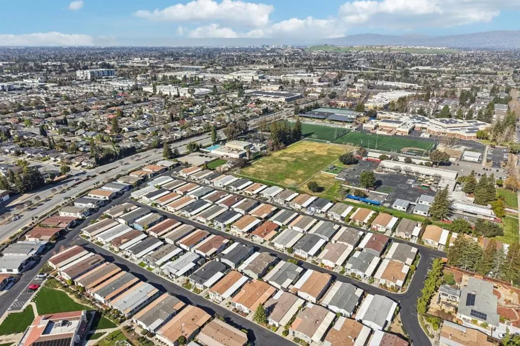 Great value for this spacious triple-wide manufactured home! 3 bedrooms, 2 bathrooms & 1780 sqft. Central air conditioning. Separate family room with a fireplace. The living room features vaulted ceilings with a dining area that includes a built-in hutch. Separate laundry room with washer and dryer. Primary suite includes a walk-in closet with a private deck. The bathroom has dual vanities with ample storage. New paint, new interior carpet, new hardwood flooring in the bathrooms, kitchen, dining room, and living room. Welcome home to Villa Teresa MHP, one of the premiere senior communities in the South Bay. Attached front deck with a view of the hills. Carport parking for at least 2 cars plus a shed for storage. San Jose City Rent Control $1632 per month. One buyer must be at least 55 yrs old; all occupants must be at least 18 yrs old. Villa Teresa is a senior community with multiple amenities including pool, spa, clubhouse with billiards and table tennis, Bocce ball, and DOG PARK. Great park management!